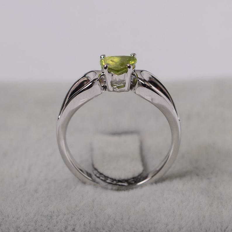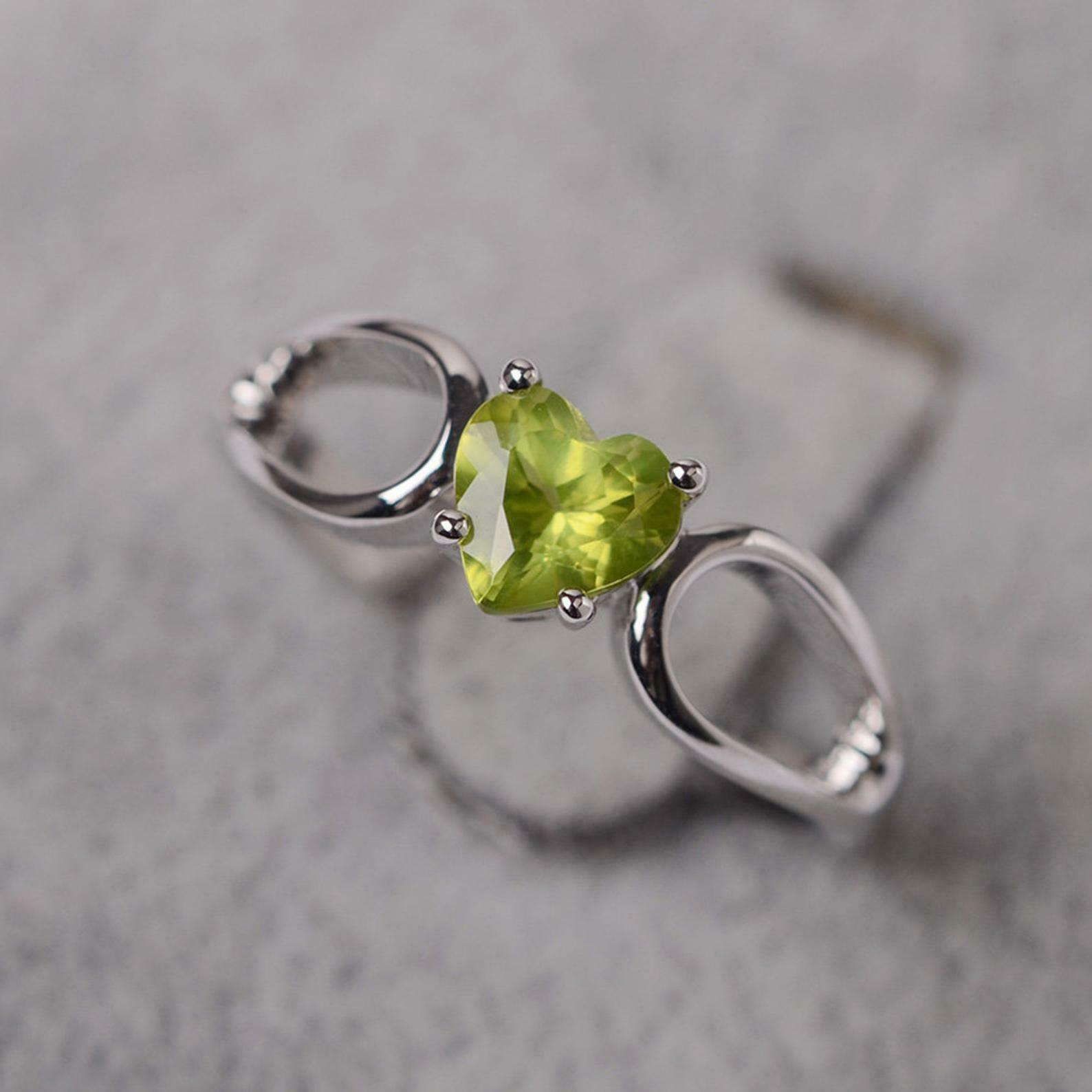 1ct Engagement Ring Heart Cut Green Peridot Split Shank 14k White Gold Finish