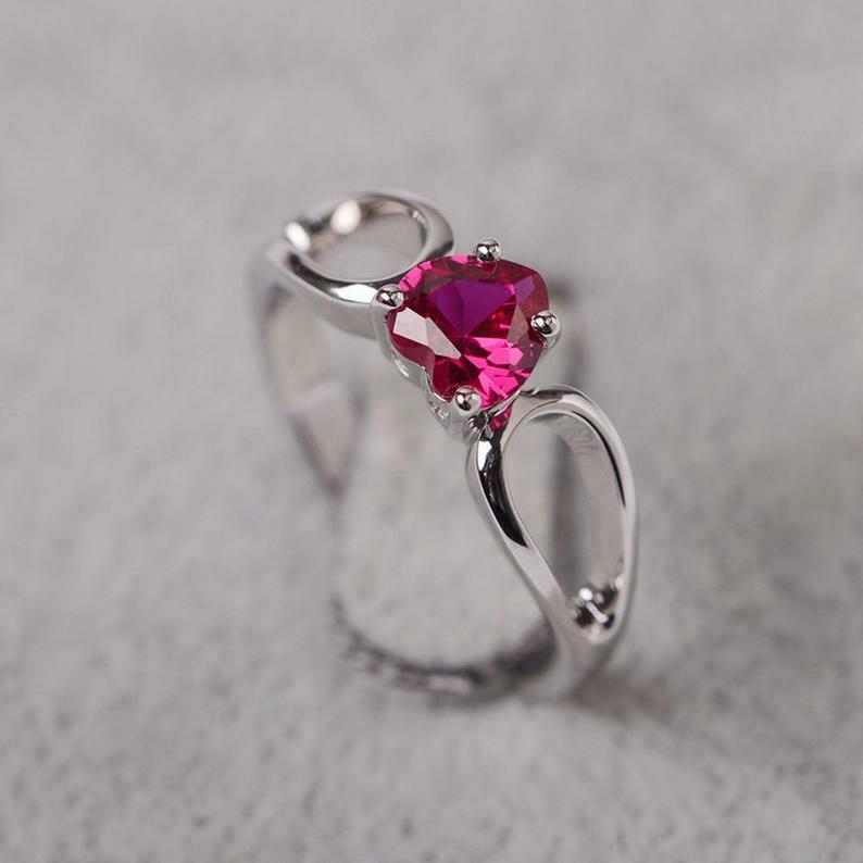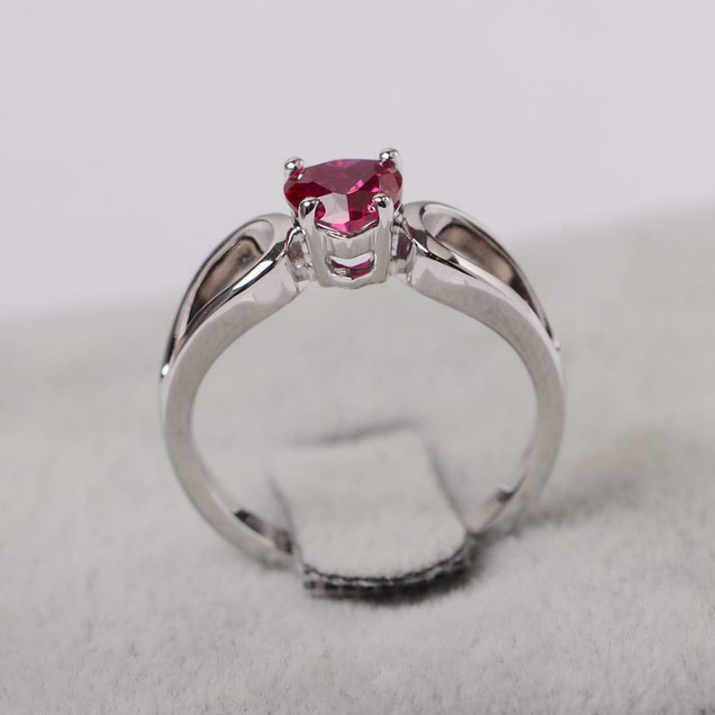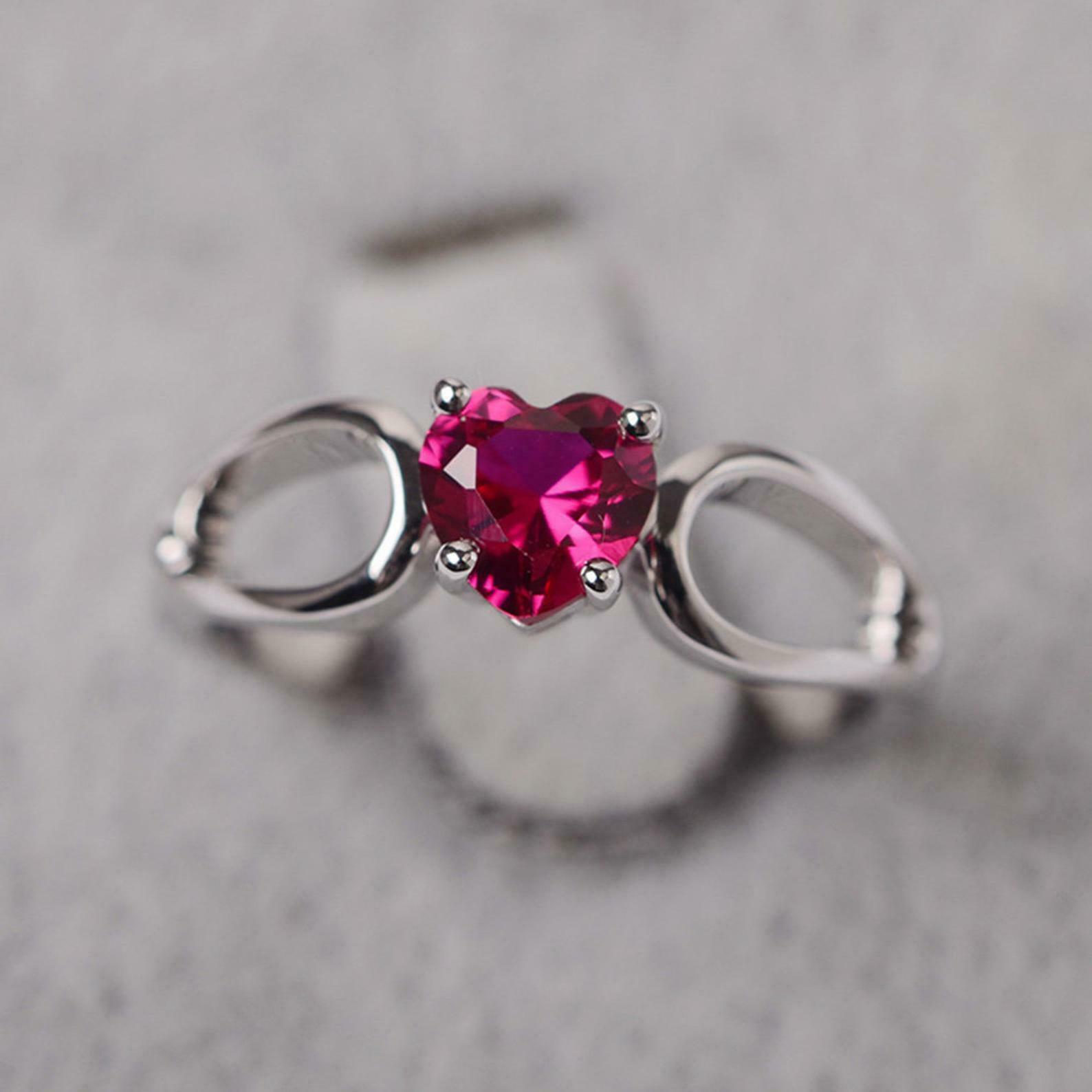 1ct Engagement Ring Heart Cut Pink Ruby Split Shank 14k White Gold Finish