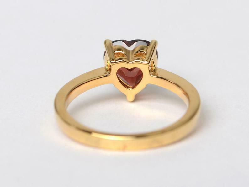 1ct Engagement Ring Heart Cut Red Garnet Solitaire Design 14k Yellow Gold Finish