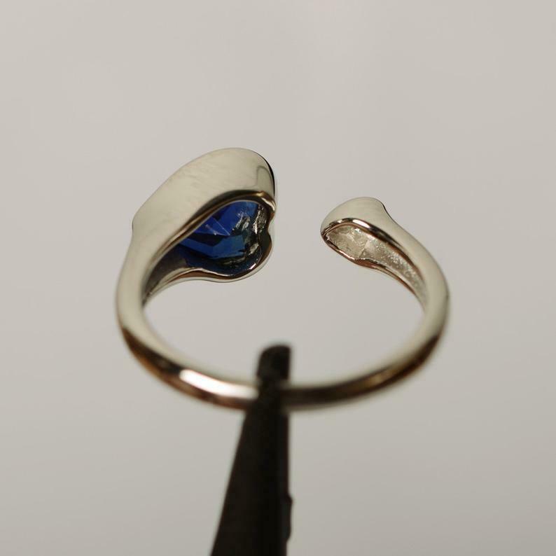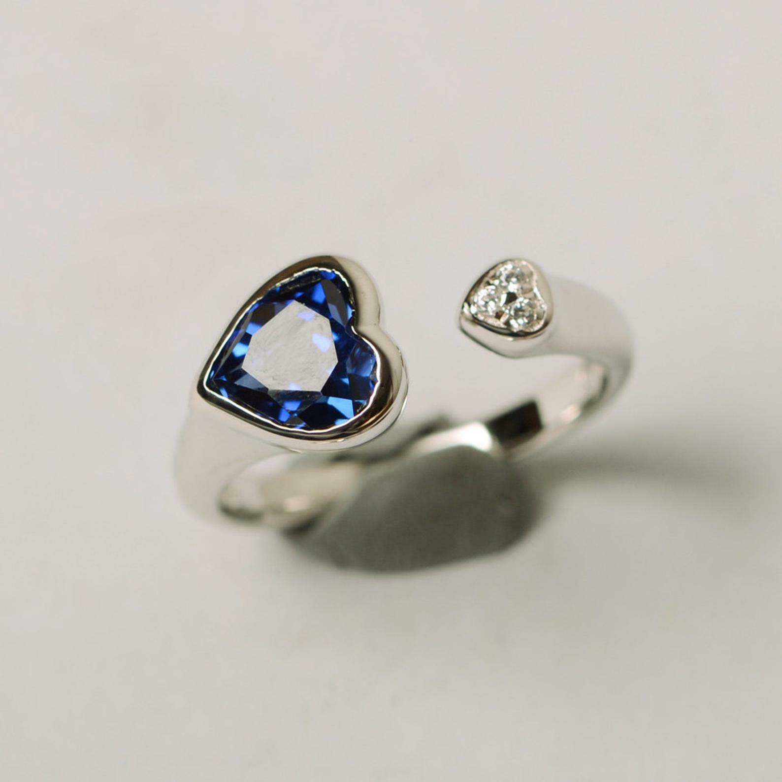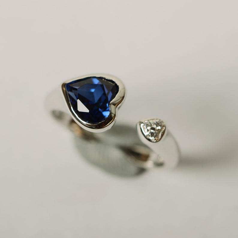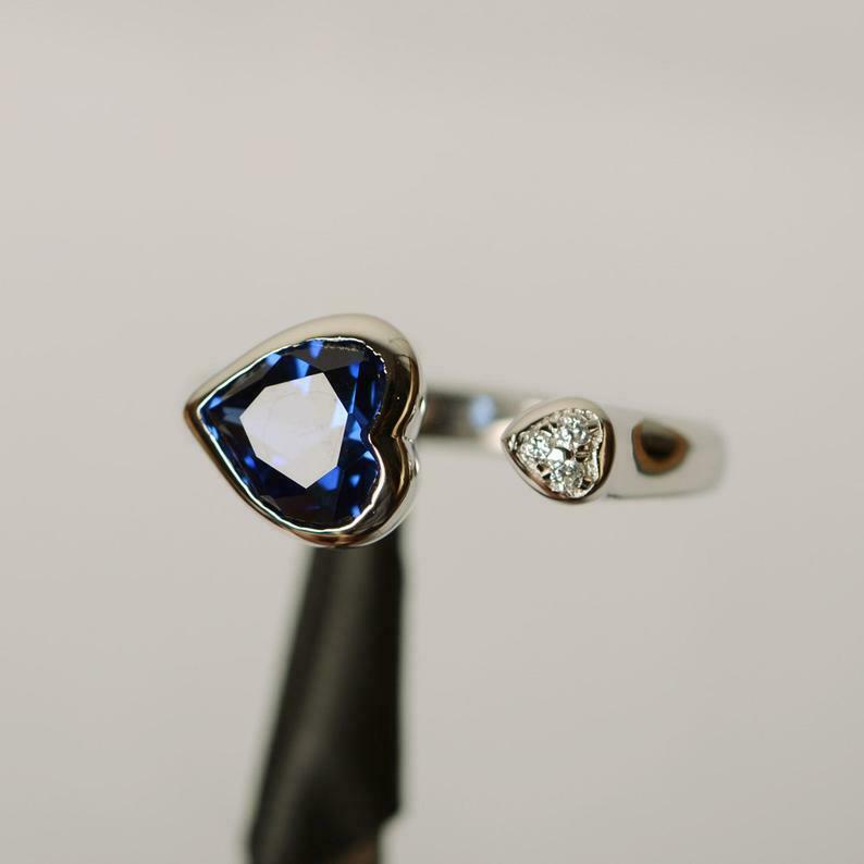 1ct Engagement Ring Heart Cut Blue Sapphire Open Cuff Stackable 14k White Gold Finish
