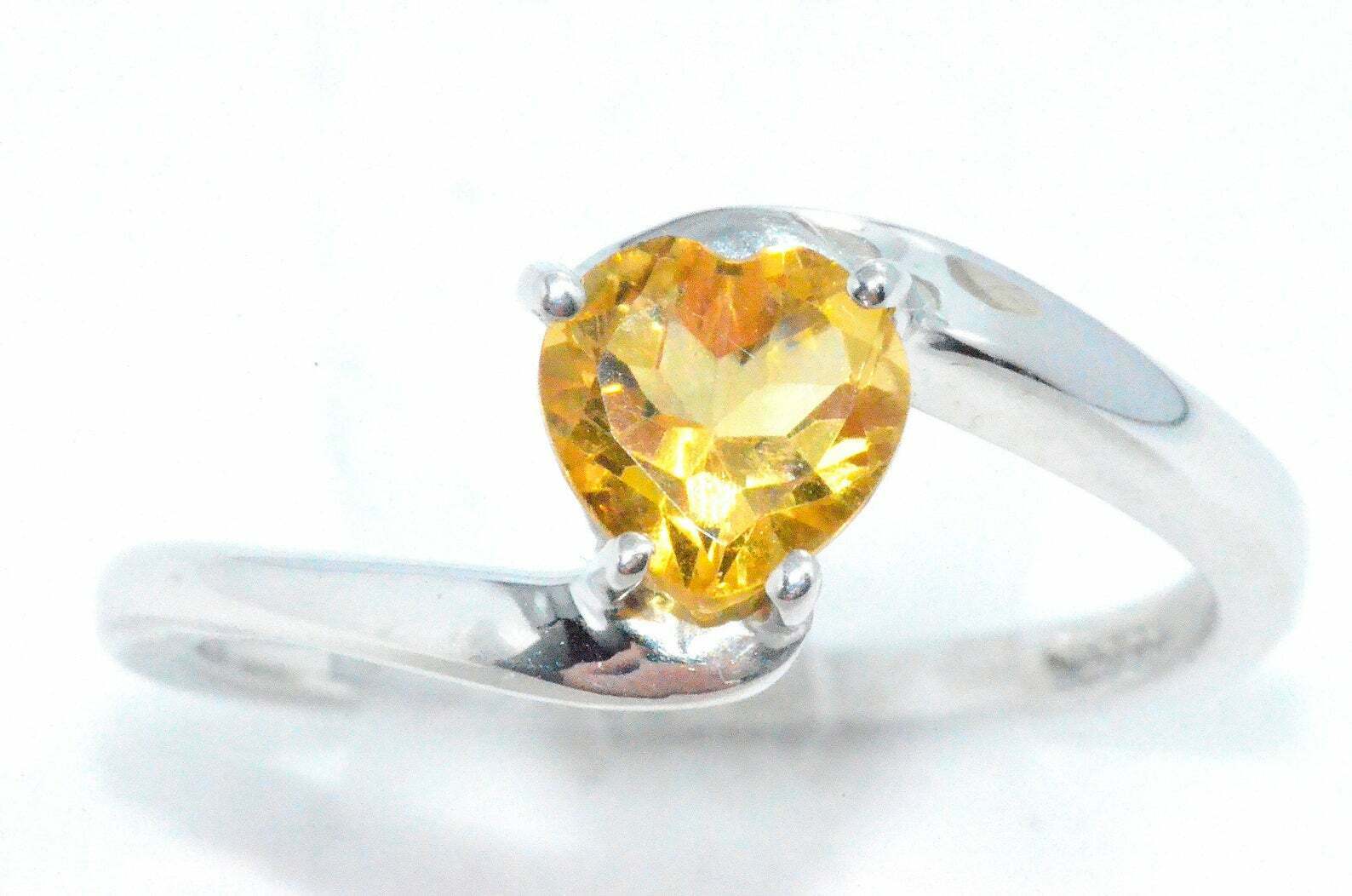 1ct Engagement Ring Heart Cut Yellow Sapphire Solitaire 14k White Gold Finish