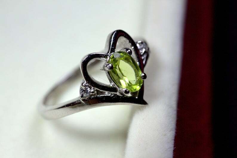 1ct Engagement Ring Oval Cut Green Peridot Bypass Style Heart 14k White Gold Finish