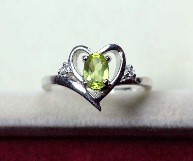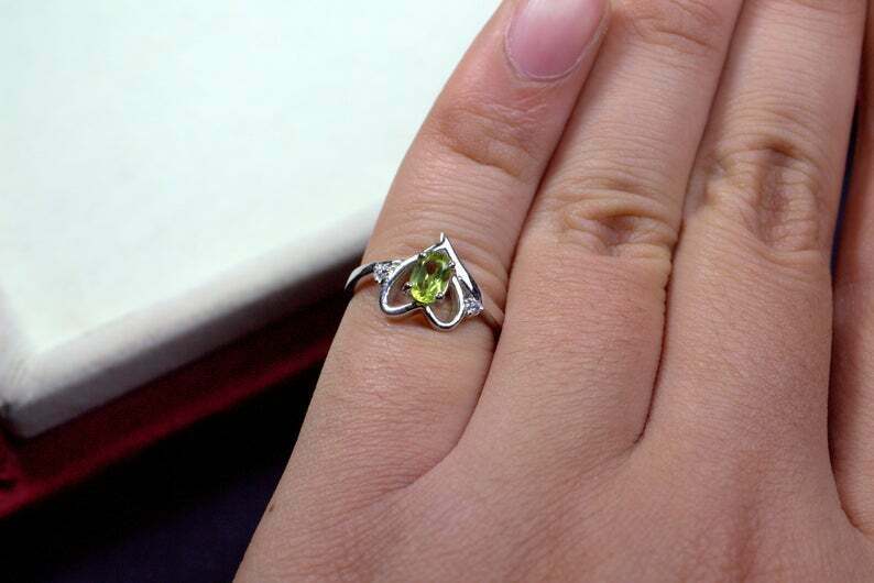 1ct Engagement Ring Oval Cut Peridot Bypass Style Heart 14k White Gold Finish