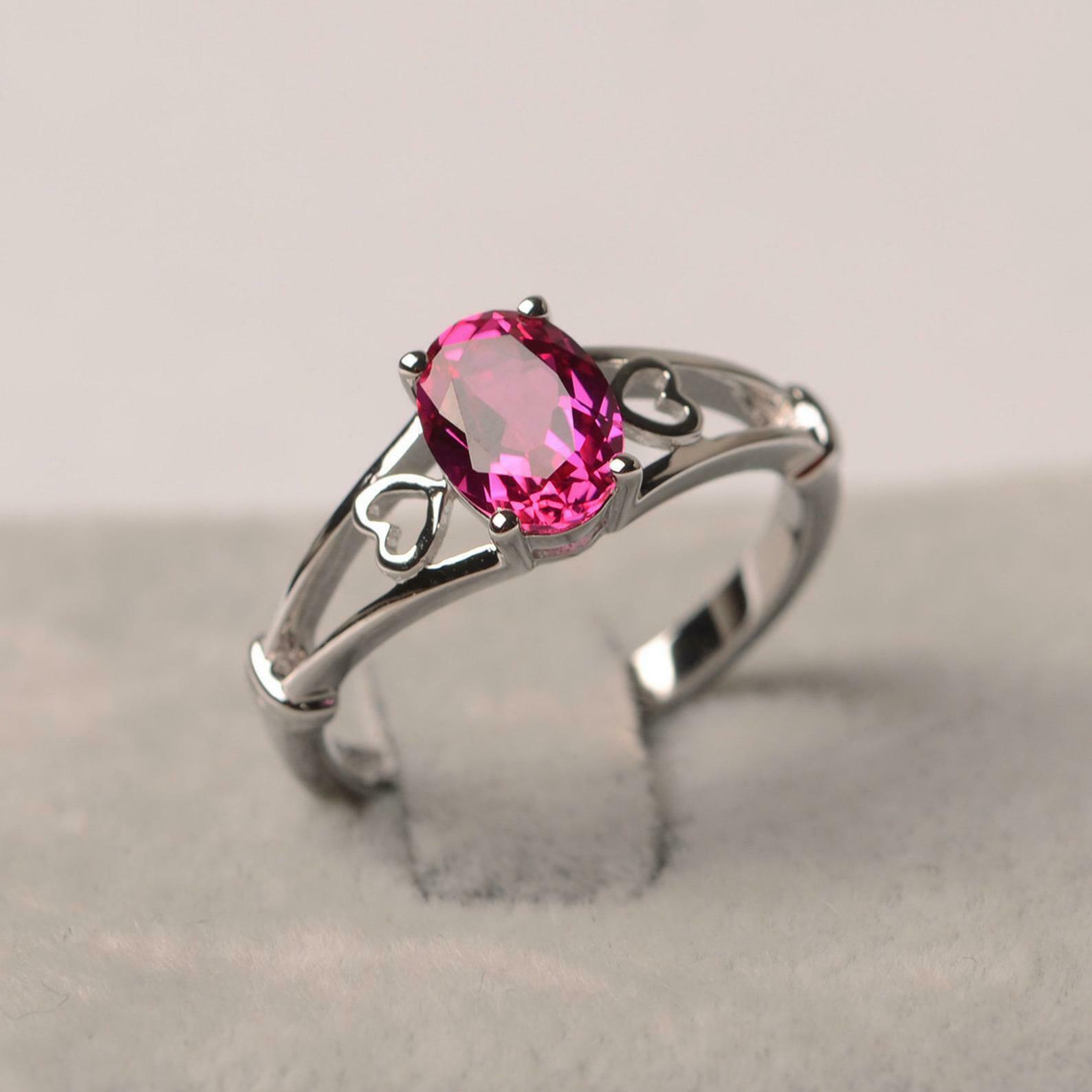 1ct Engagement Ring Oval Cut Pink Ruby Heart Split Shank 14k White Gold Finish