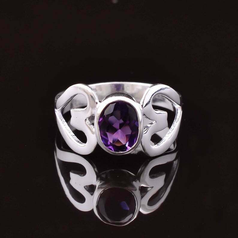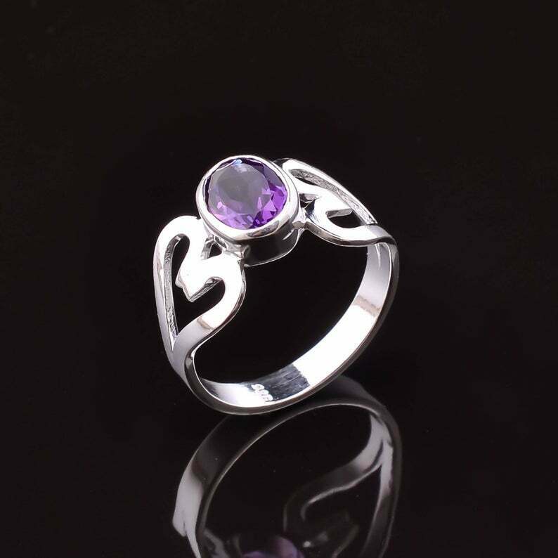 1ct Engagement Ring Oval Cut Purple Amethyst Two Hearts 14k White Gold Finish