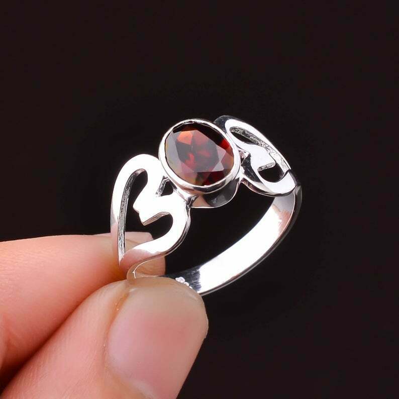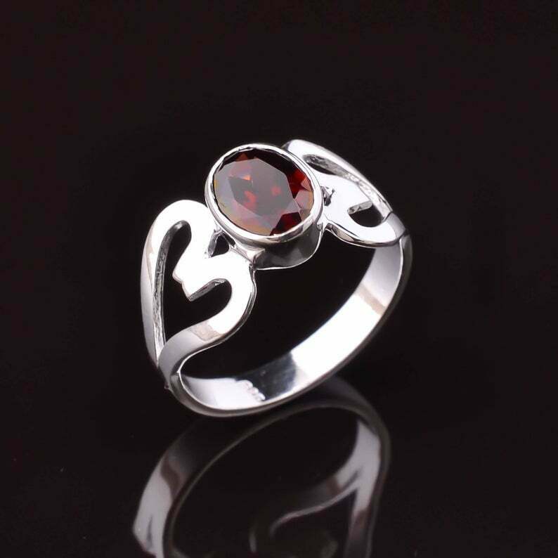 1ct Engagement Ring Oval Cut Red Garnet Two Hearts 14k White Gold Finish