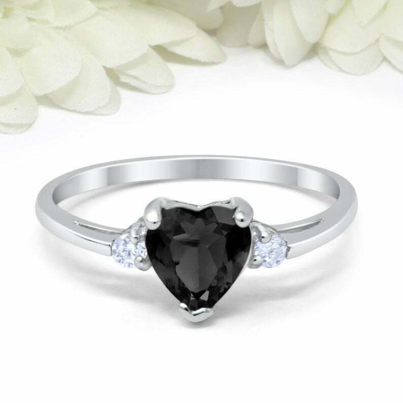 1ct Heart Black Diamond Engagement Ring Trilogy Minimalist 14k White Gold Finish