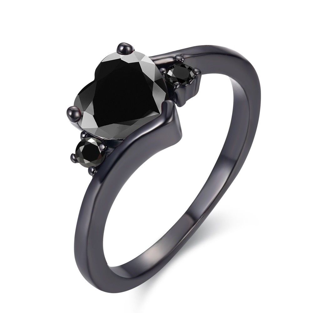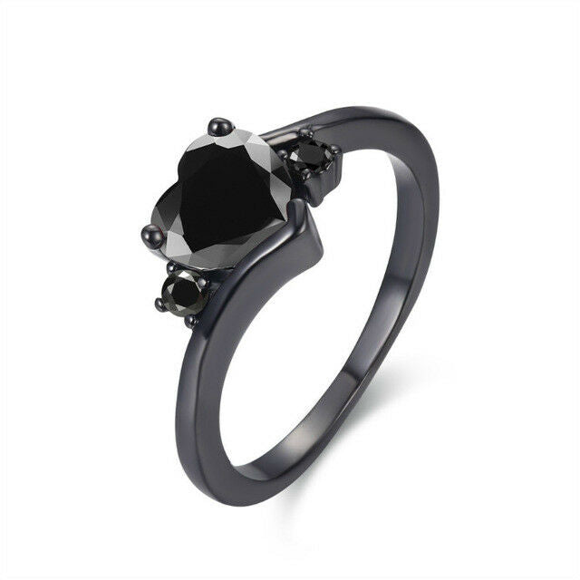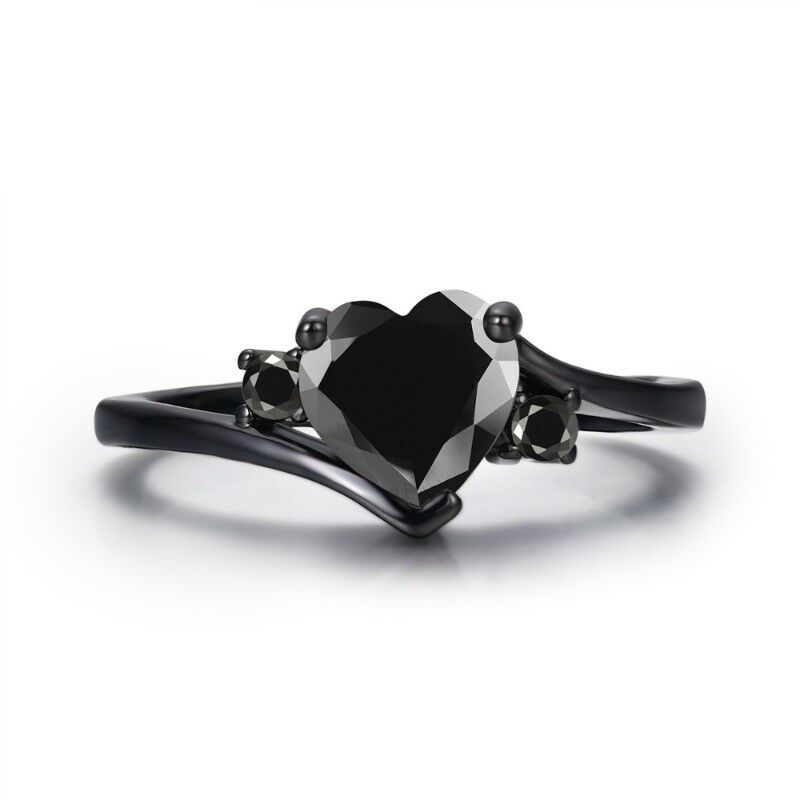 1ct Heart Cut Black Diamond Love Solitaire Engagement Ring 14k Black Gold Finish
