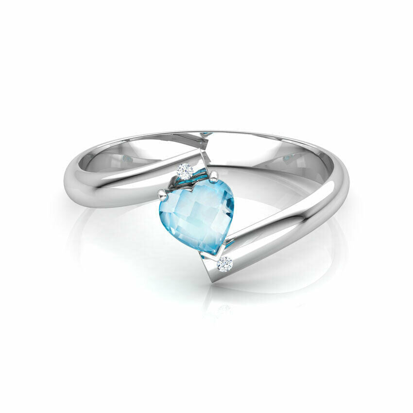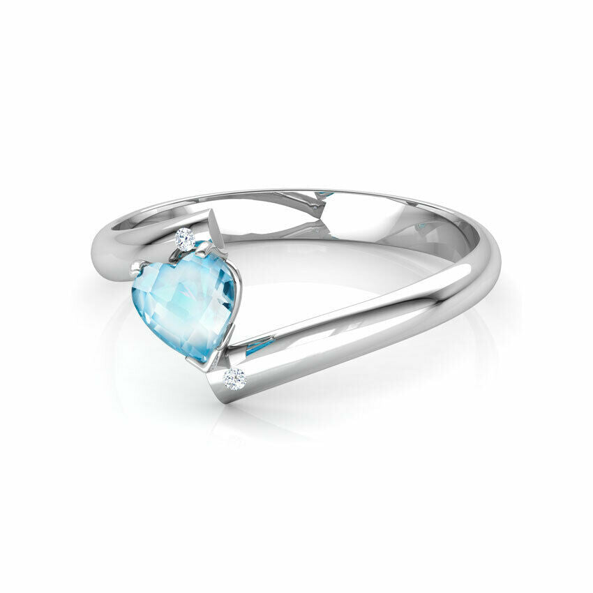 1Ct Heart Cut Blue Aquamarine Diamond ByPass Engagement Ring 14K White Gold Over