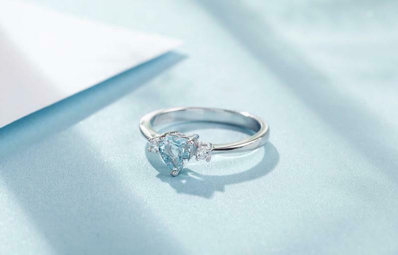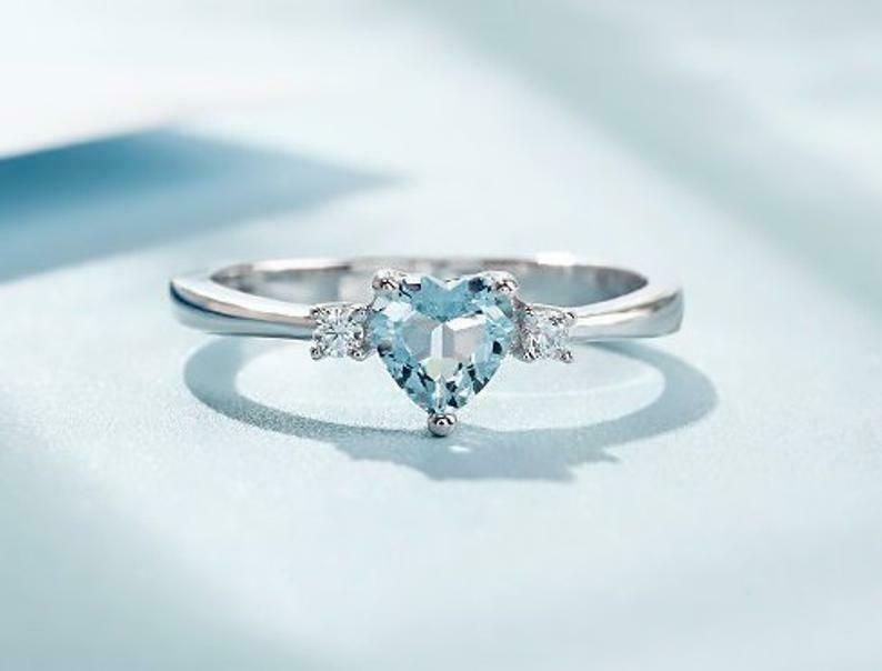 1ct Heart Cut Blue Aquamarine Engagement Ring Diamond Trilogy 14k White Gold Over