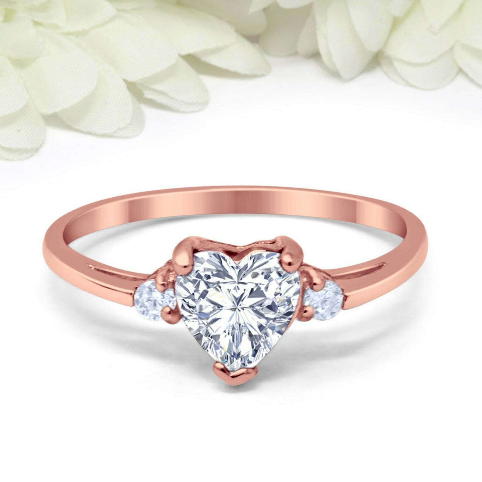 1ct Heart Cut Diamond Engagement Ring Trilogy Minimalist 14k Rose Gold Finish
