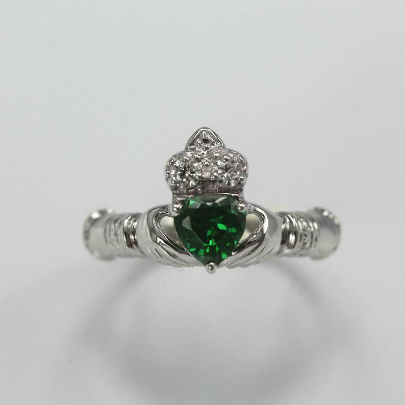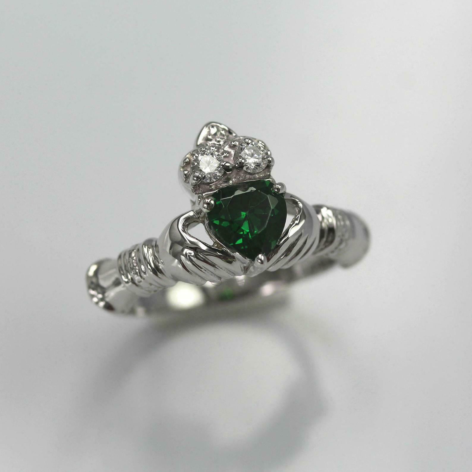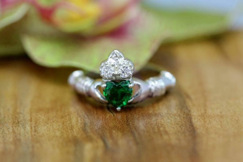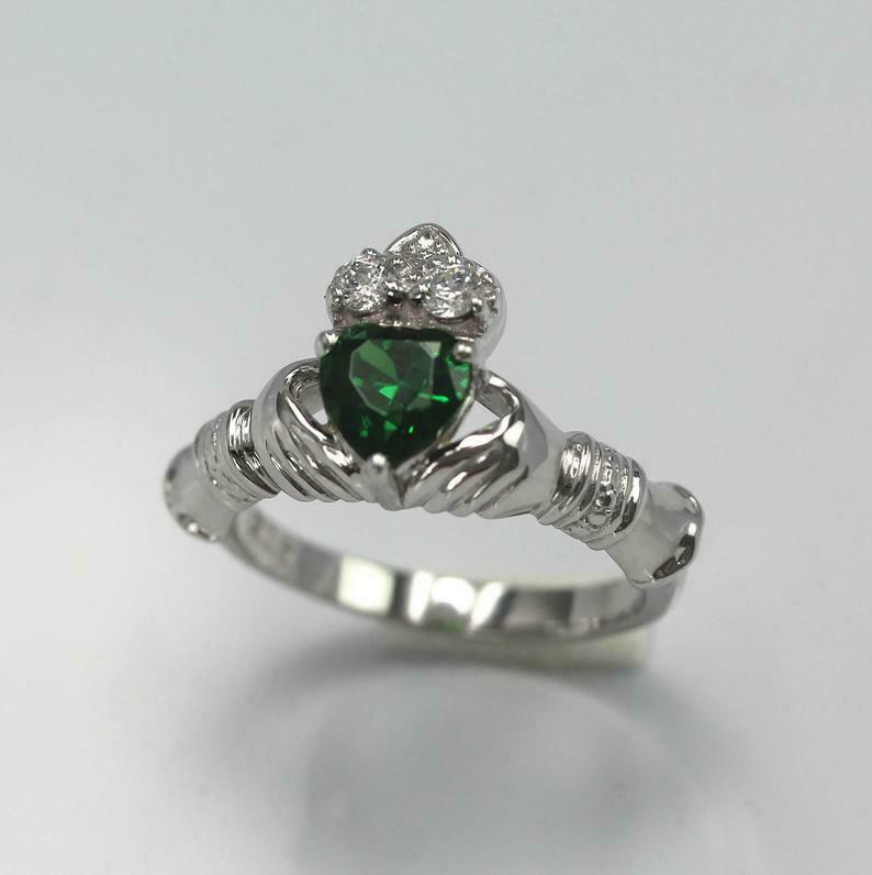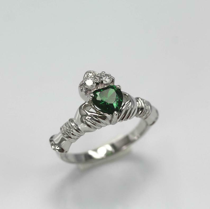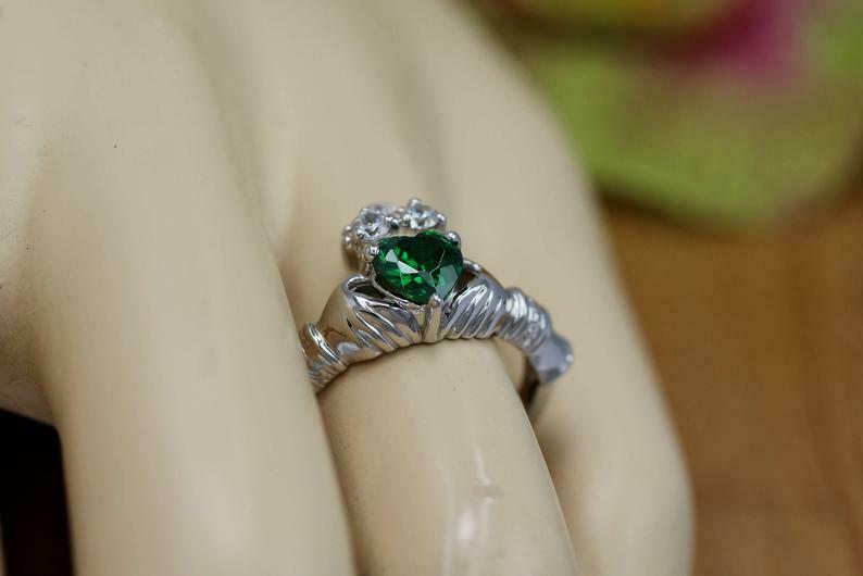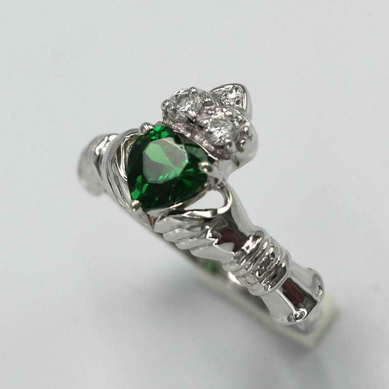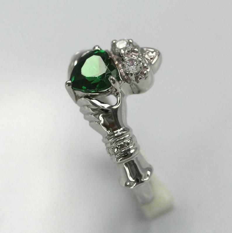 1ct Heart Cut Green Emerald Engagement Ring Diamond Claddagh 14k White Gold Over