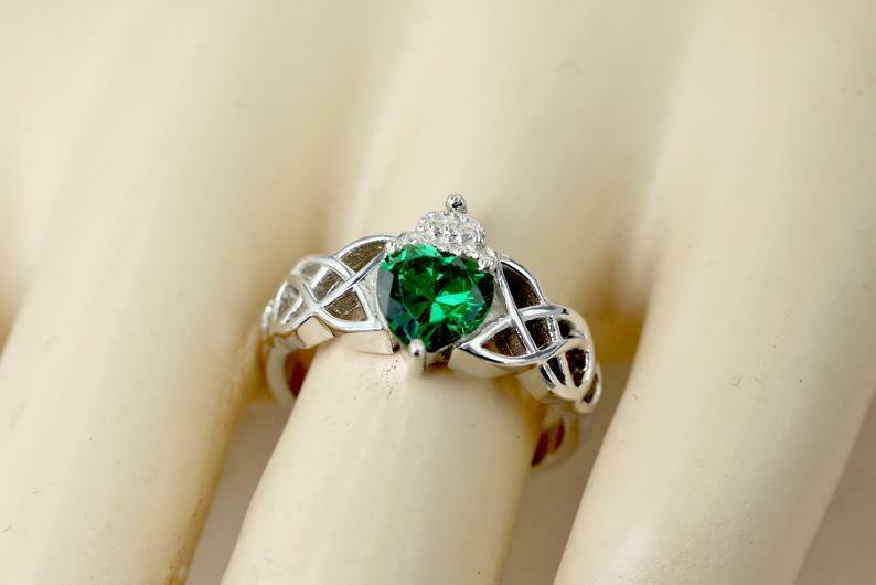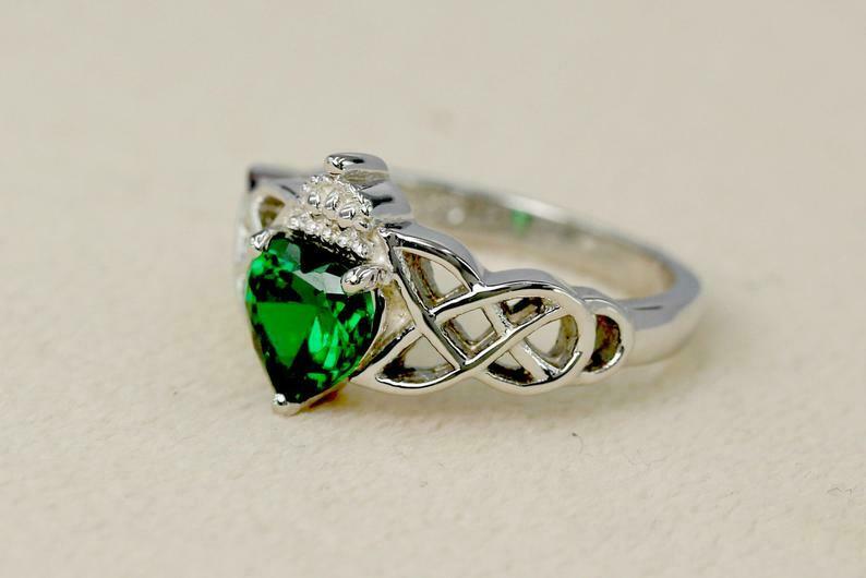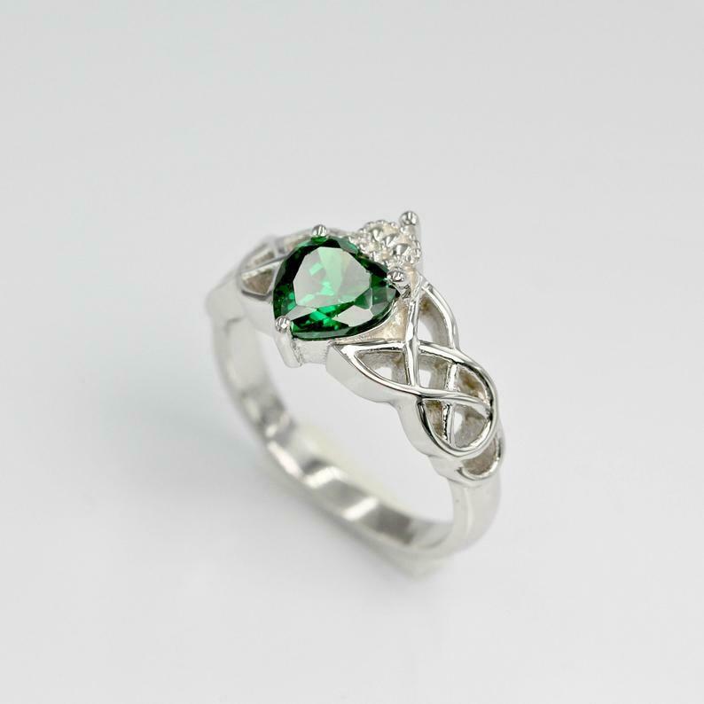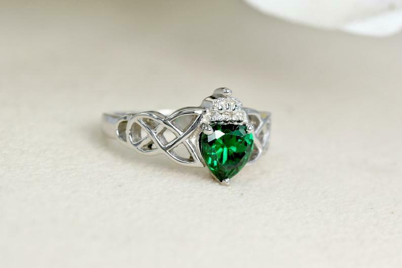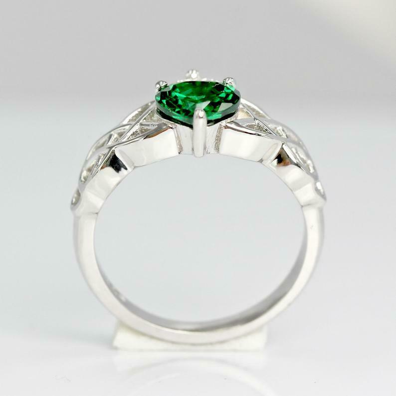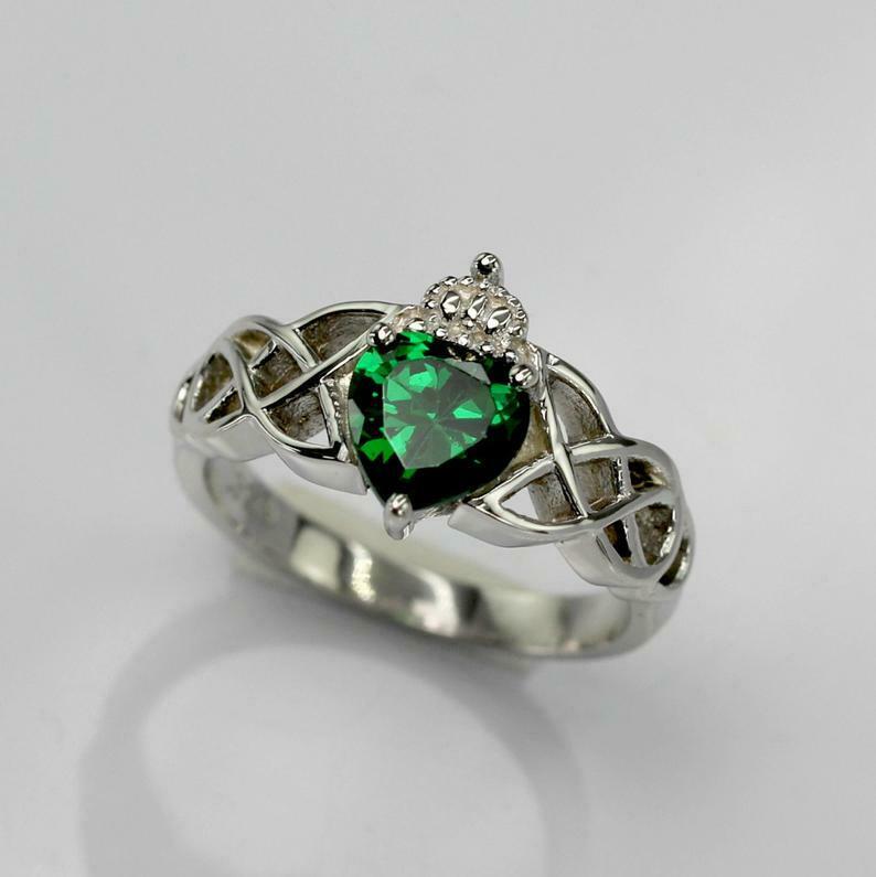 1ct Heart Cut Green Emerald Engagement Ring Double Knot Crown 14k WhiteGold Over