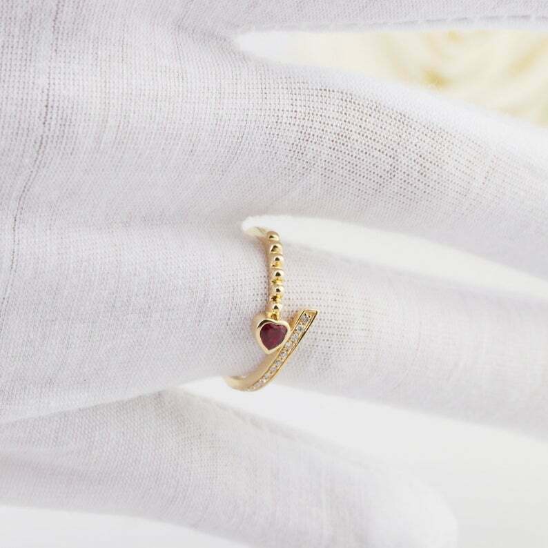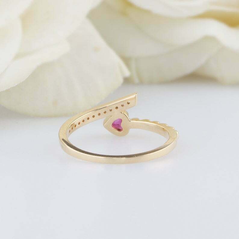 1ct Heart Cut Pink Ruby Engagement Ring Bypass Solitaire 14k Yellow Gold Finish