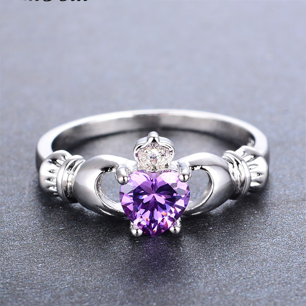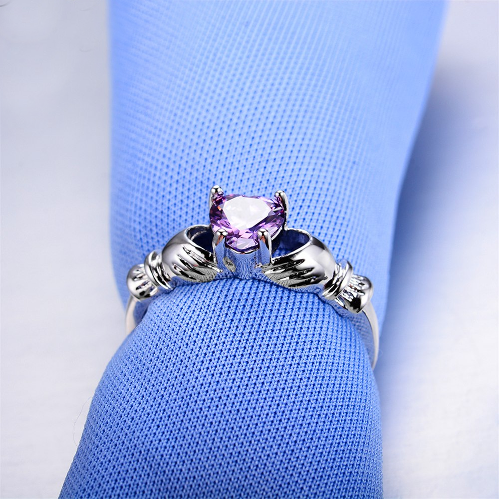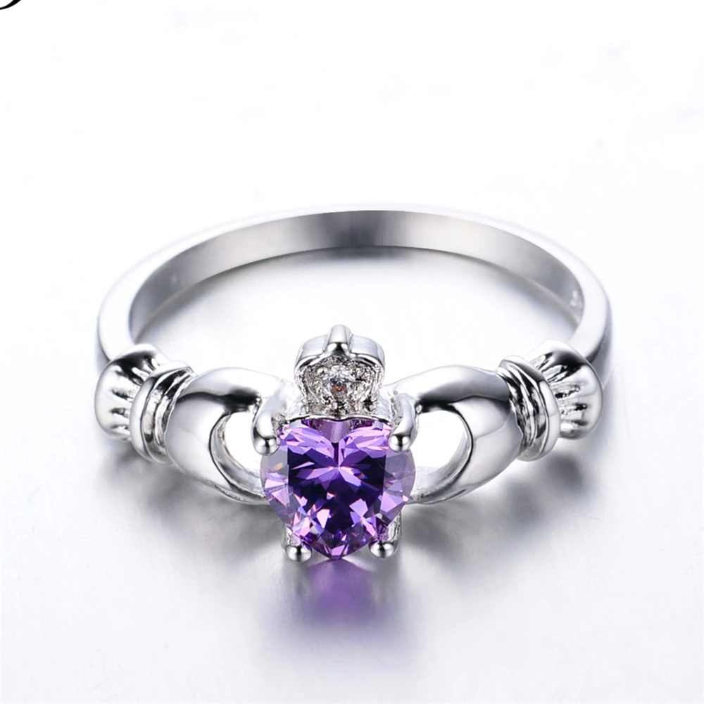 1ct Heart Cut Purple Amethyst Engagement Ring 14k WhiteGold Over Claddagh Design