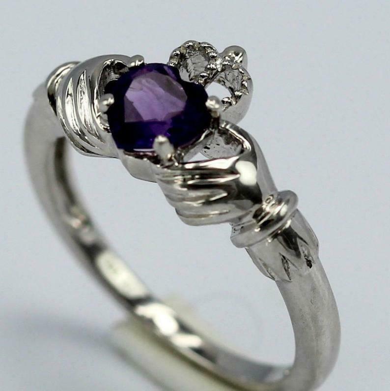1ct Heart Cut Purple Amethyst Engagement Ring Claddagh Irish 14k White Gold Over