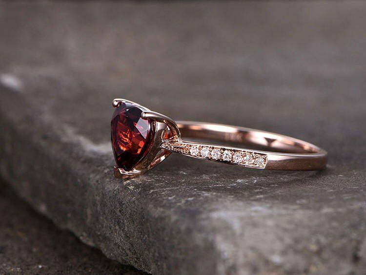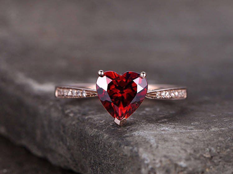 1ct Heart Cut Red Garnet Solitaire Wedding Engagement Ring 14k Rose Gold Finish
