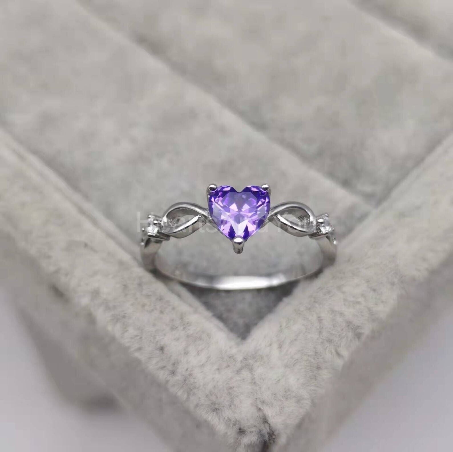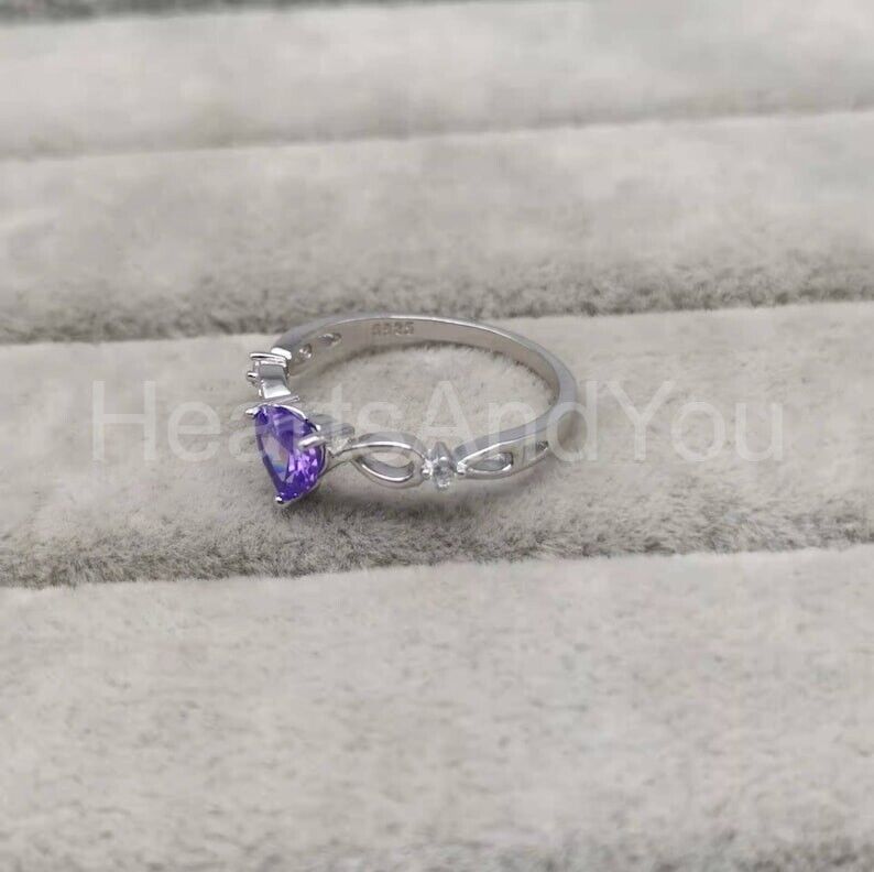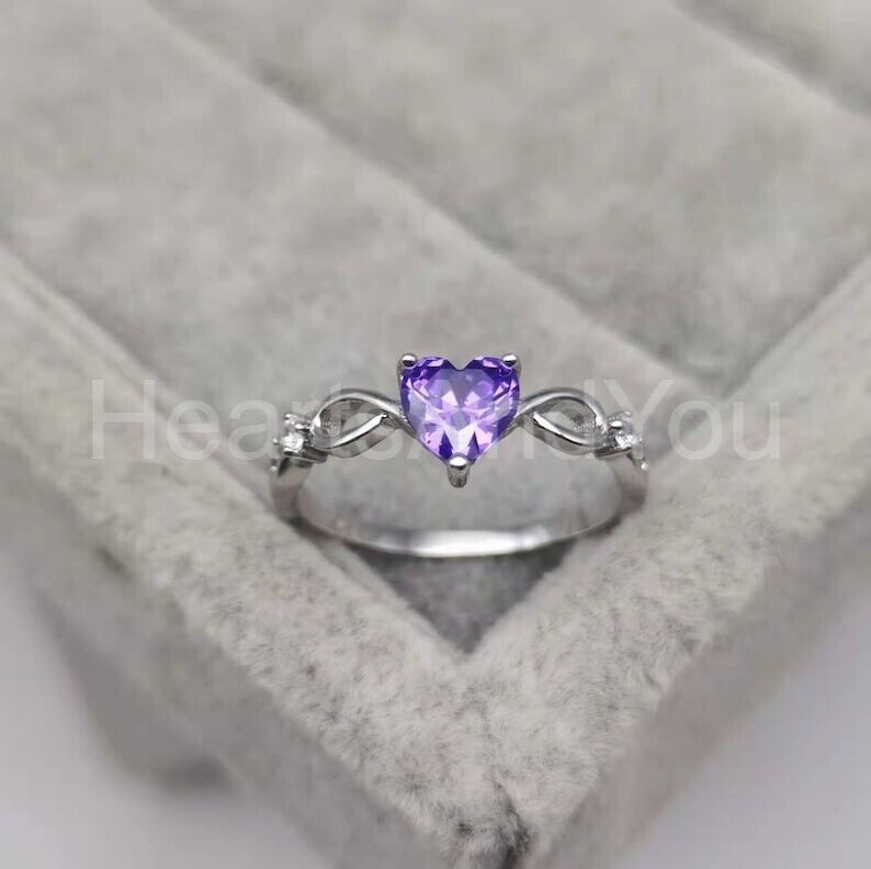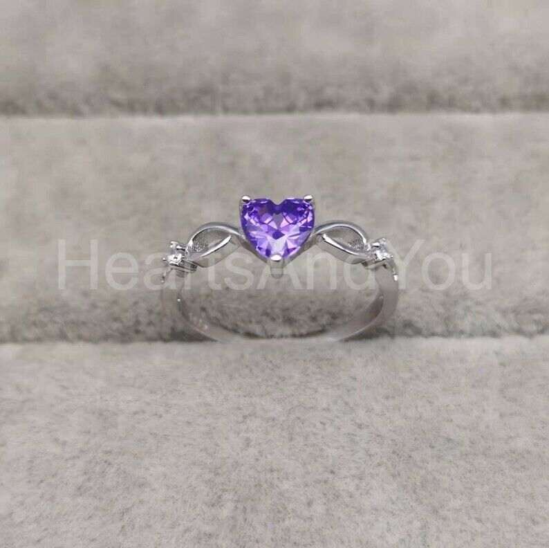 1ct Heart Cut Simulated Amethyst Infinity Engagement Ring 14k White Gold Plated