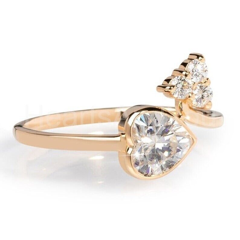 1ct Heart Cut Simulated Diamond Bypass Engagement Ring 14k Yellow Gold Plated