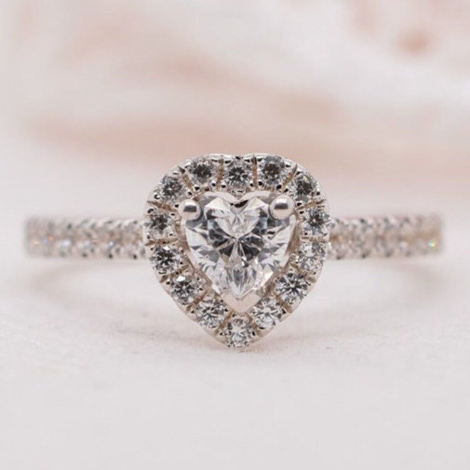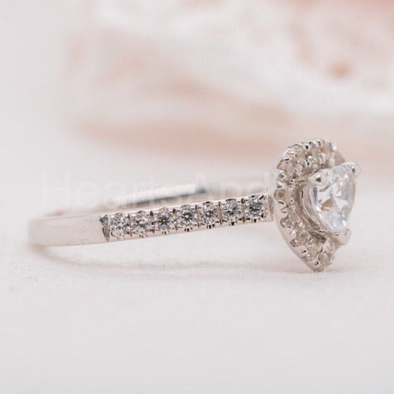 1ct Heart Cut Simulated Diamond Open Halo Engagement Ring 14k White Gold Plated