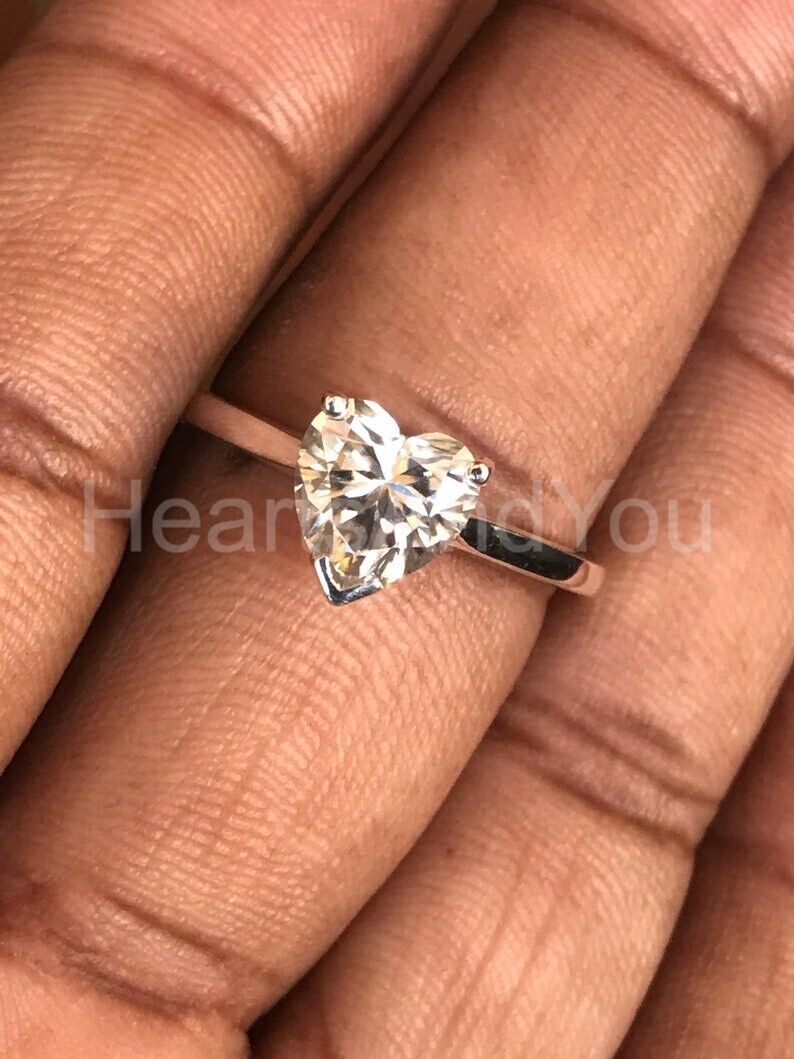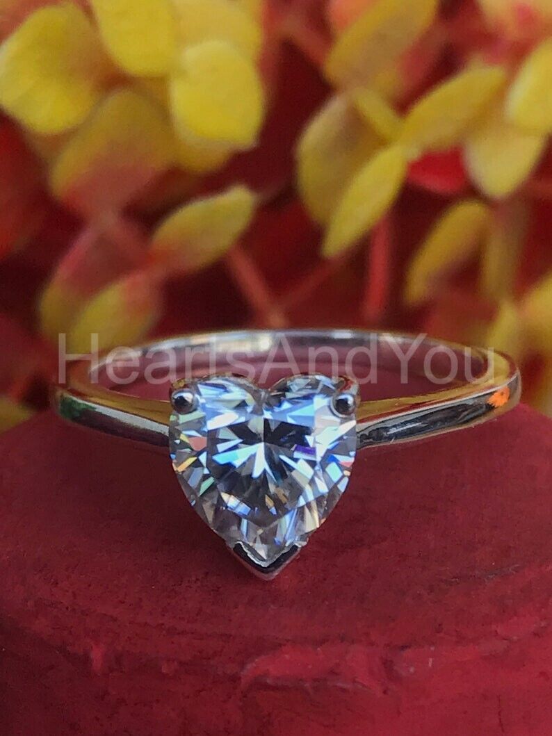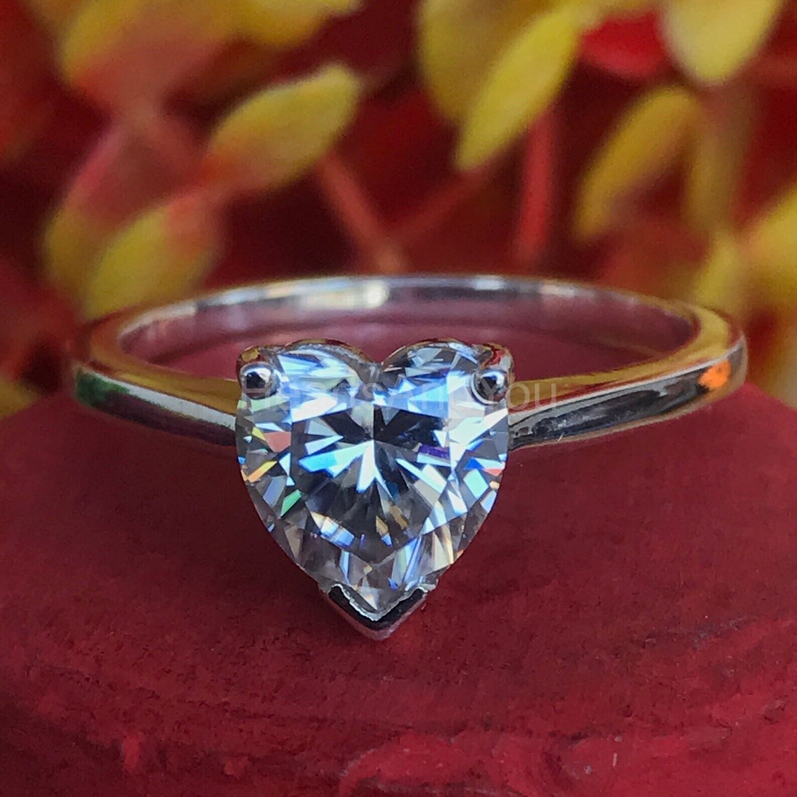 1ct Heart Cut Simulated Diamond Solitaire Engagement Ring 14k White Gold Plated