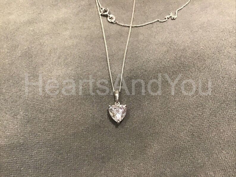 1ct Heart Cut Simulated Diamond Solitaire Pendant 14k White Gold Plated NO CHAIN