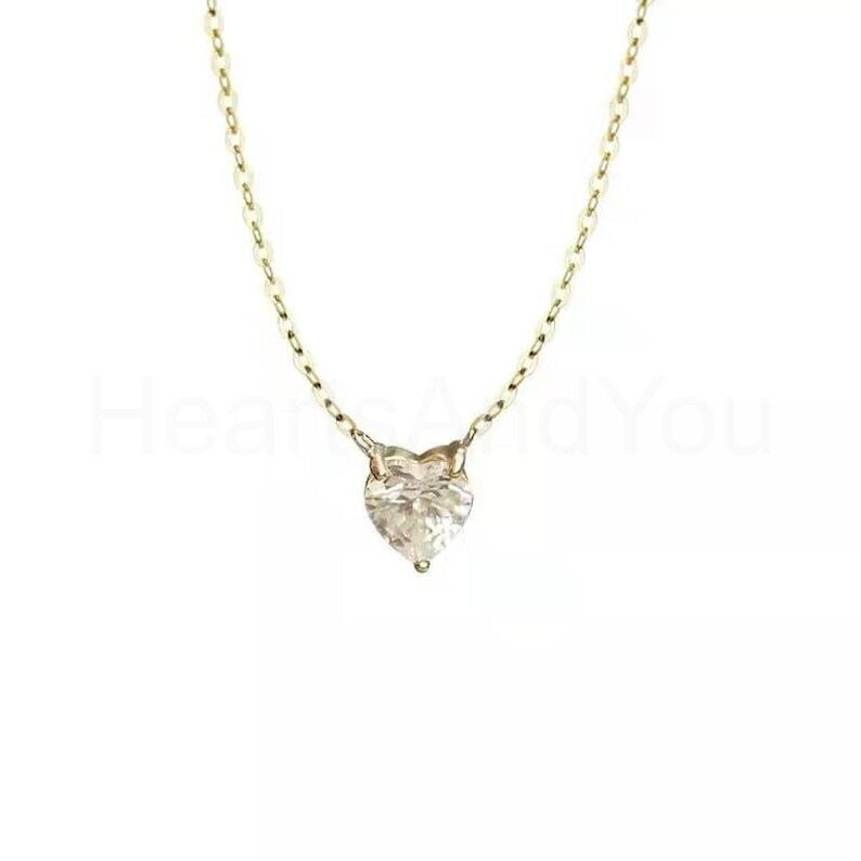 1ct Heart Cut Simulated Diamond Solitaire Pendant Chain 14k Yellow Gold Plated