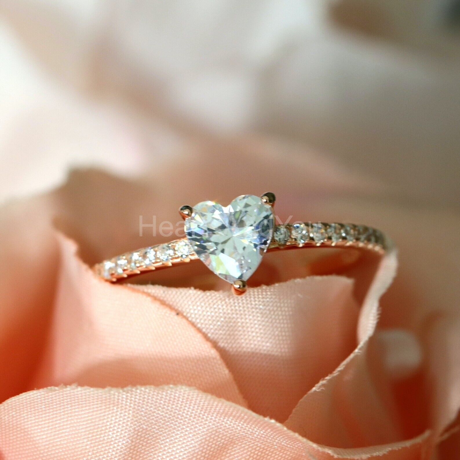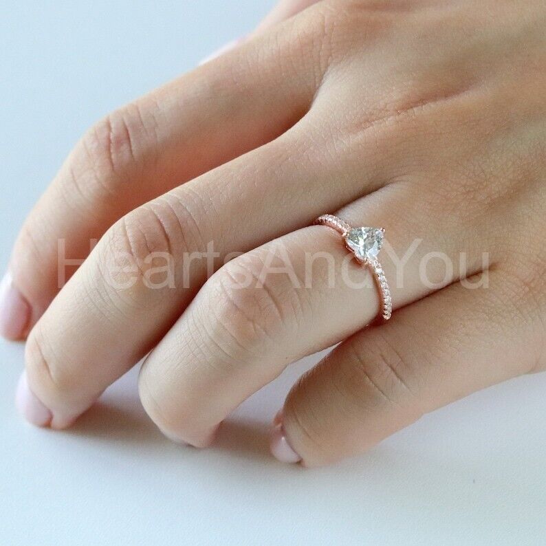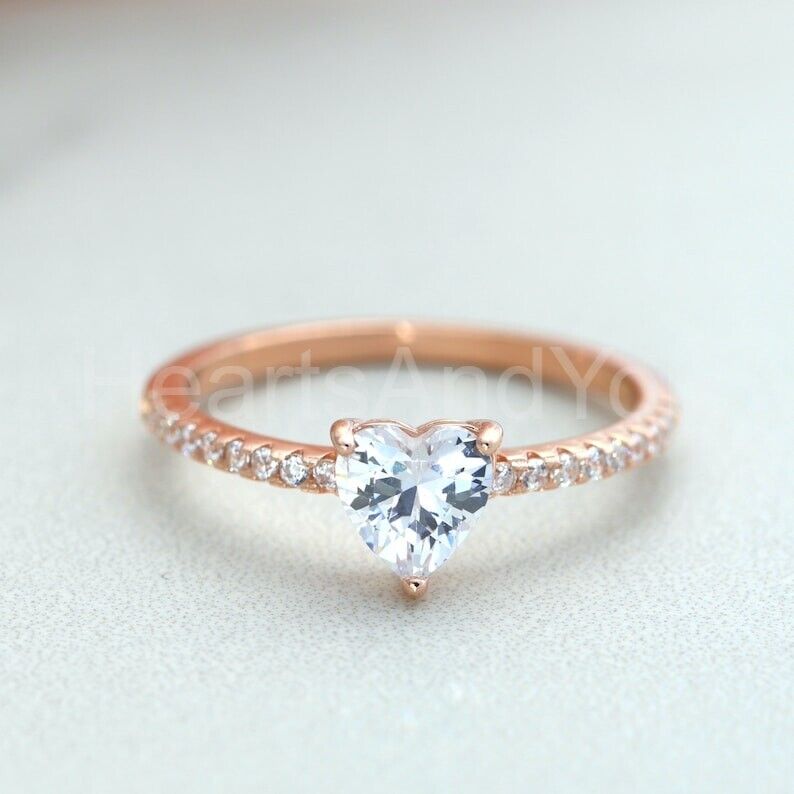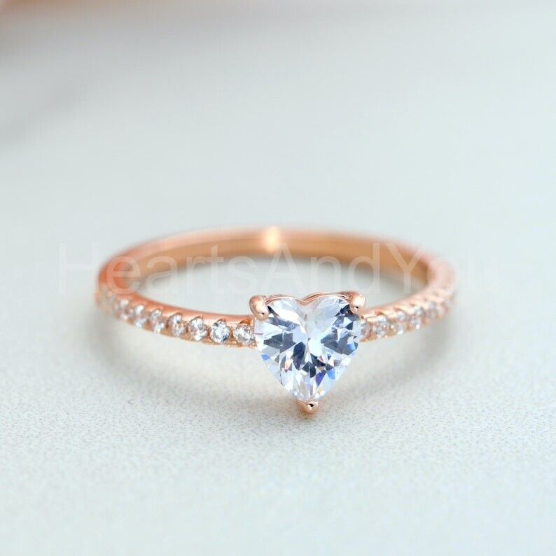 1ct Heart Cut Simulated Diamond Solitaire with Accent Ring 14k Rose Gold Plated