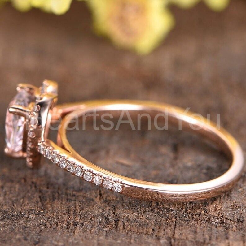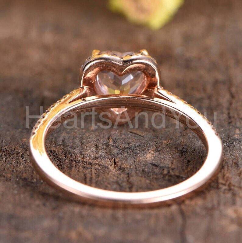 1ct Heart Cut Simulated Peach Morganite Halo Engagement Ring 14k RoseGold Plated