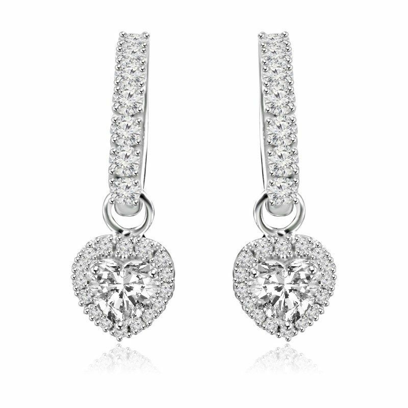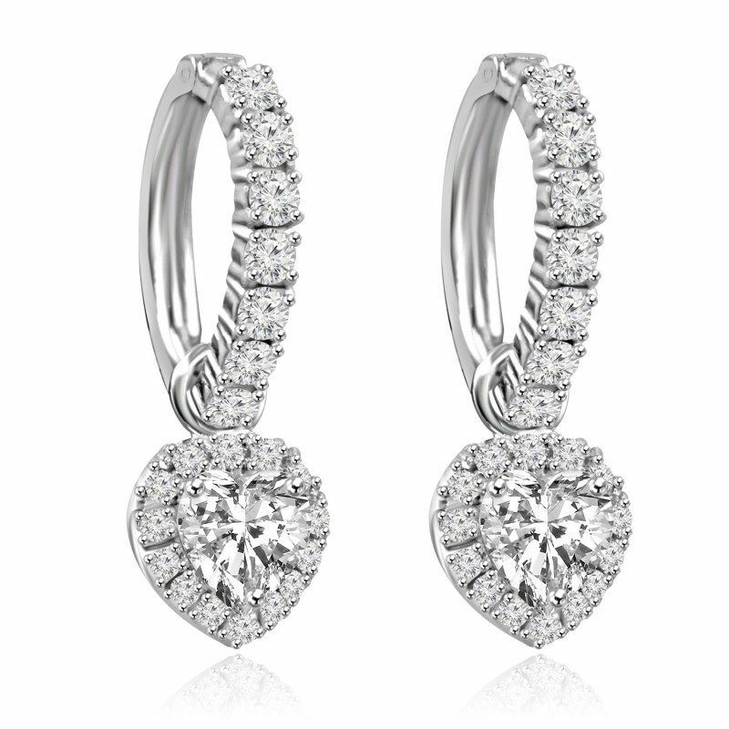 1ct Heart Cut VVS1 D Diamond Hoop Drop Earring Women Girl 14k White Gold Finish