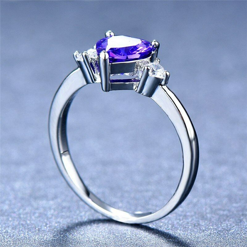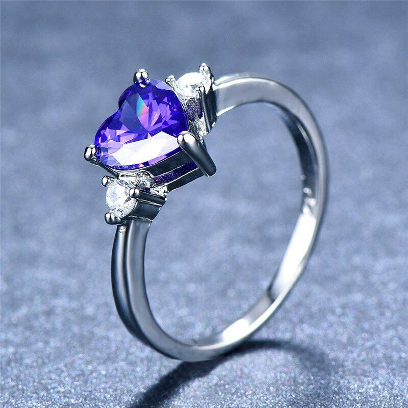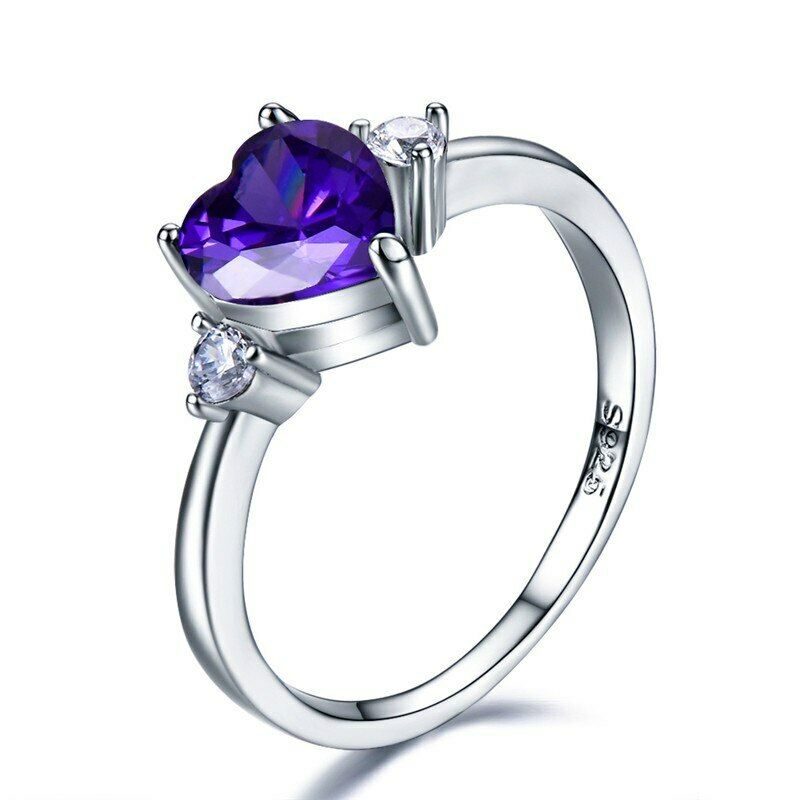 1ct Heart Purple Amethyst Engagement Ring 14k White Gold Finish Trilogy Diamond