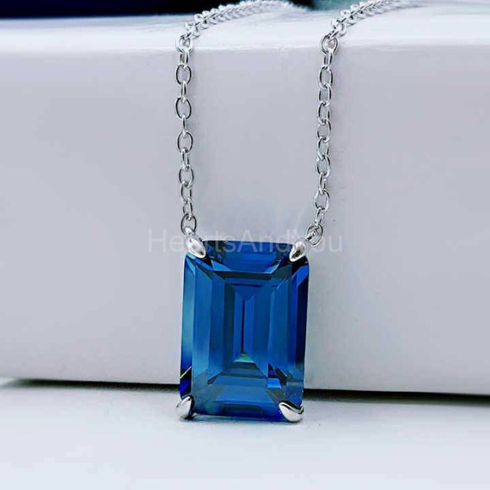 1ct Heart Cut Simulated Blue Sapphire Solitaire Pendant Chain 14k White Gold Plated