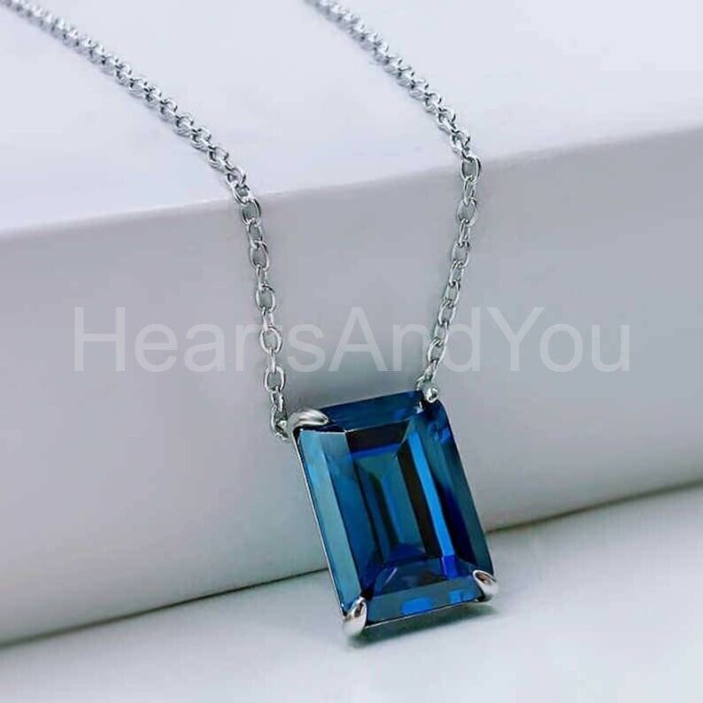 1ct Heart Simulated Blue Sapphire Solitaire Pendant Chain 14k White Gold Plated