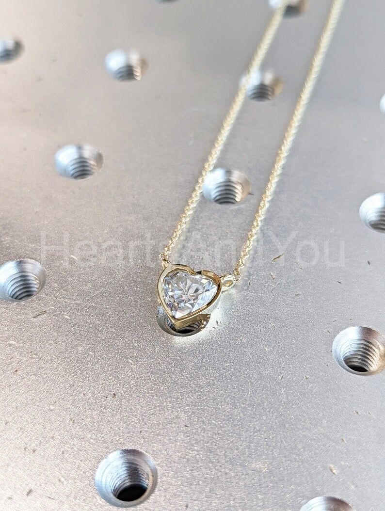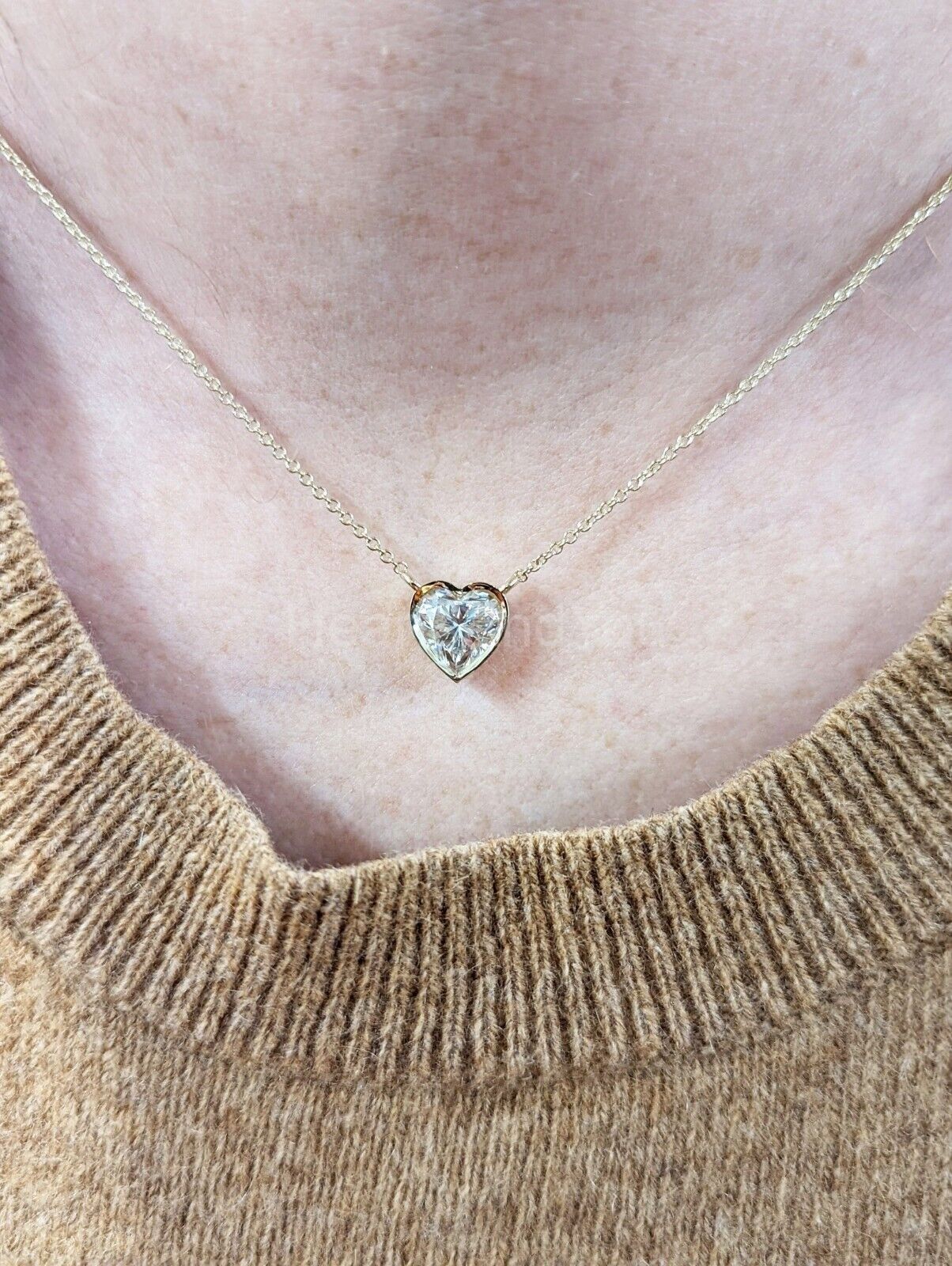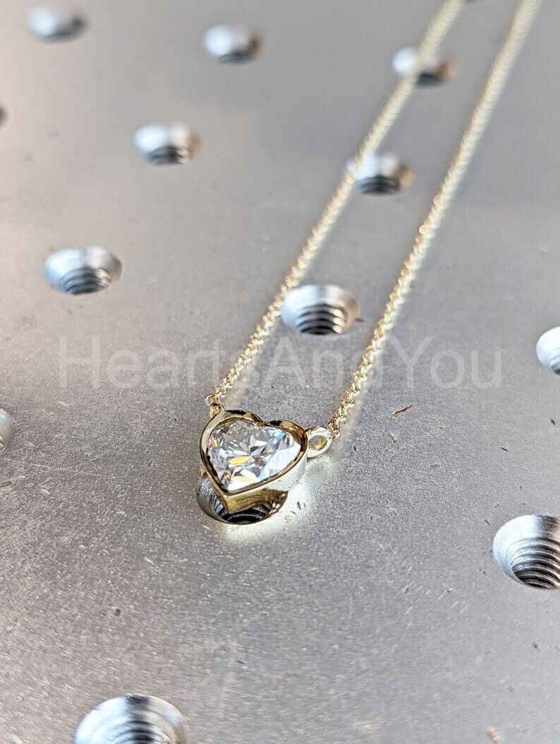 1ct Heart Simulated Diamond Beze Set Pendant with Chain 14k Yellow Gold Plated