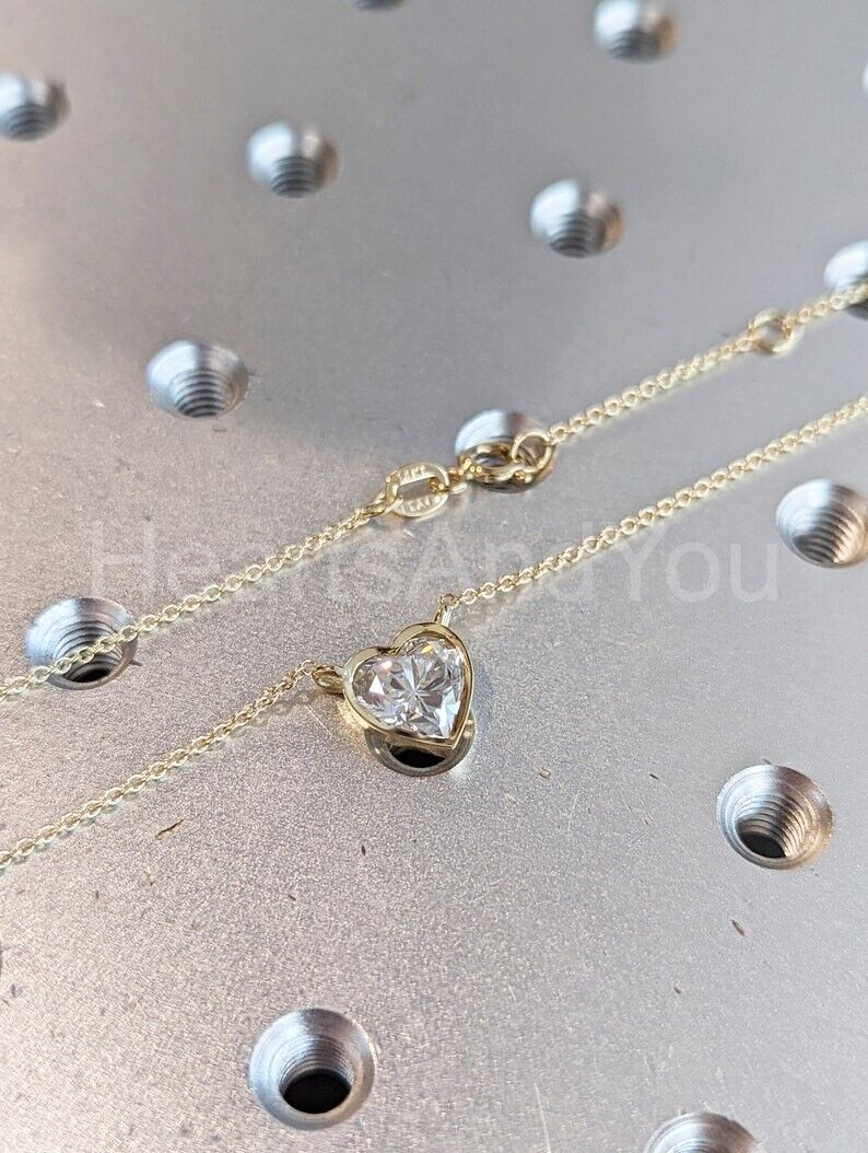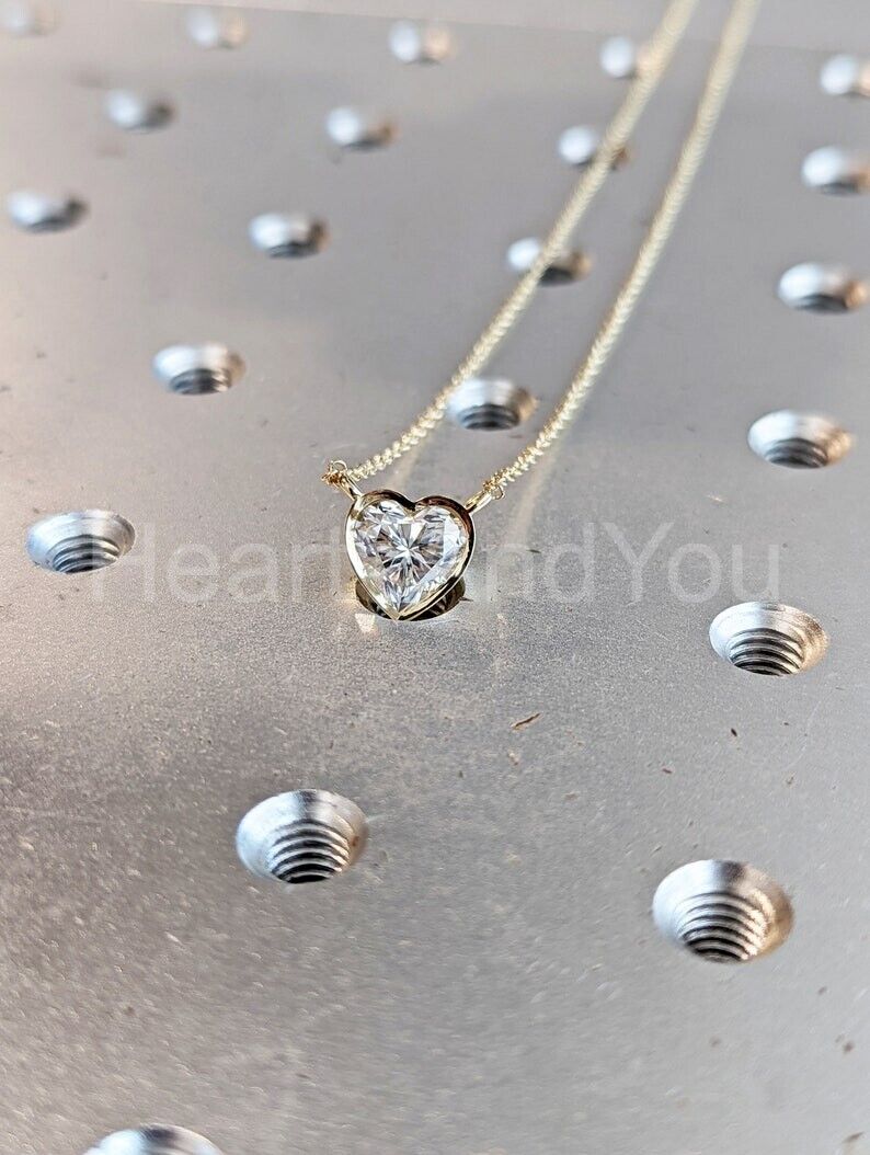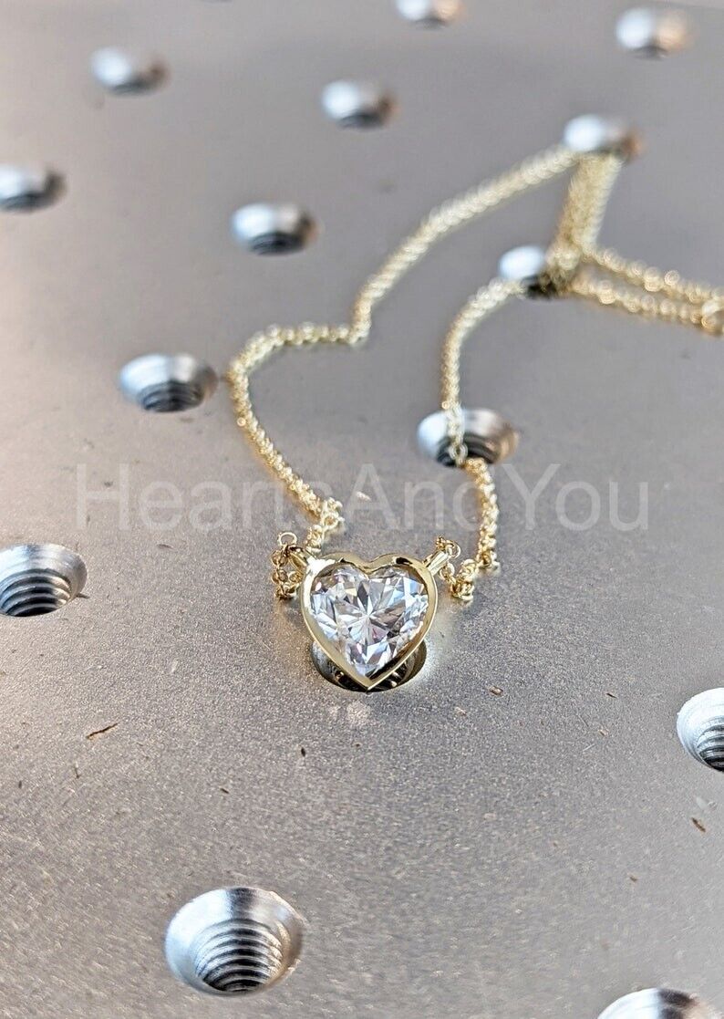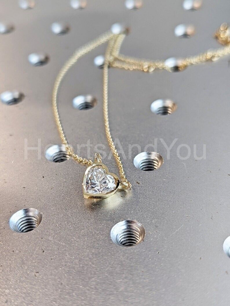 1ct Heart Simulated Diamond Beze Set Pendant with Chain 14k Yellow Gold Plated