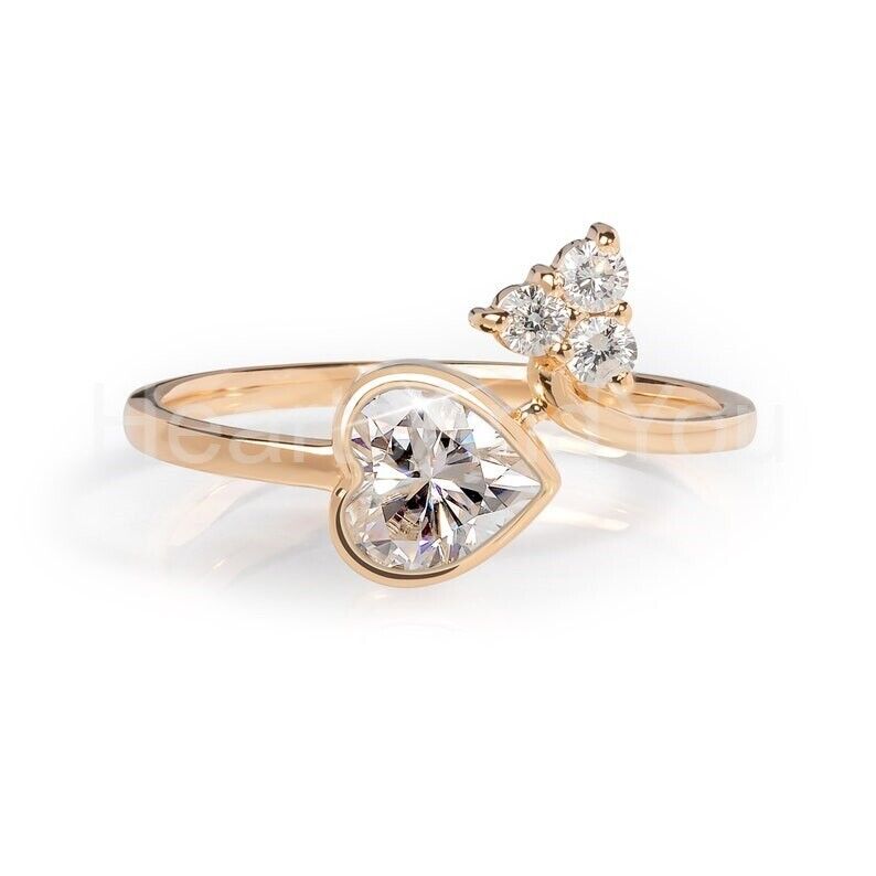 1ct Heart Simulated Diamond Bezel Petite Engagement Ring 14k Yellow Gold Plated