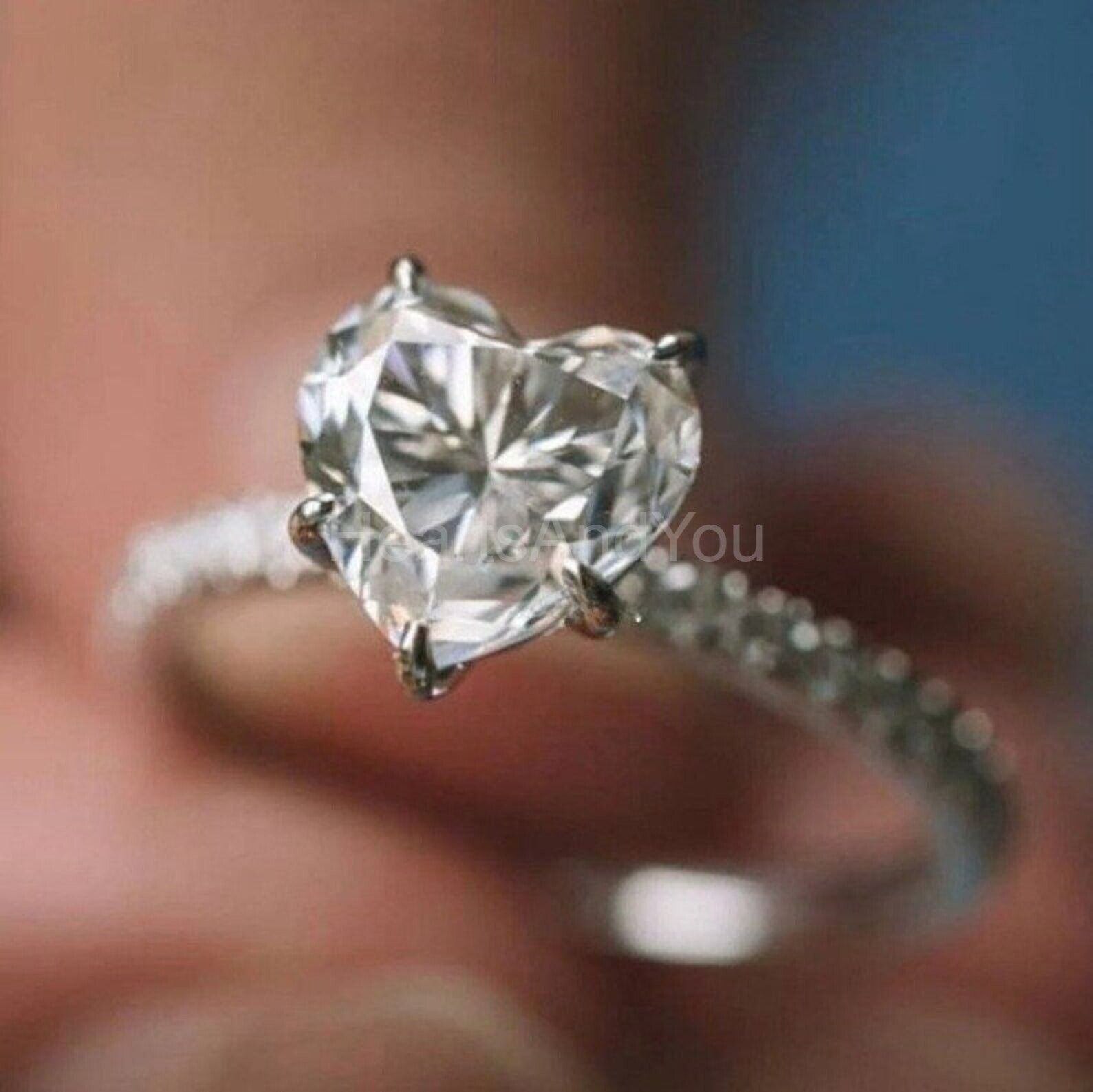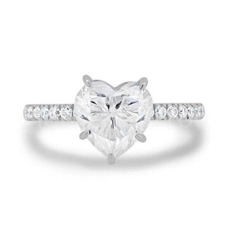 1ct Heart Simulated Diamond Solitaire with Accents Ring 14k White Gold Plated
