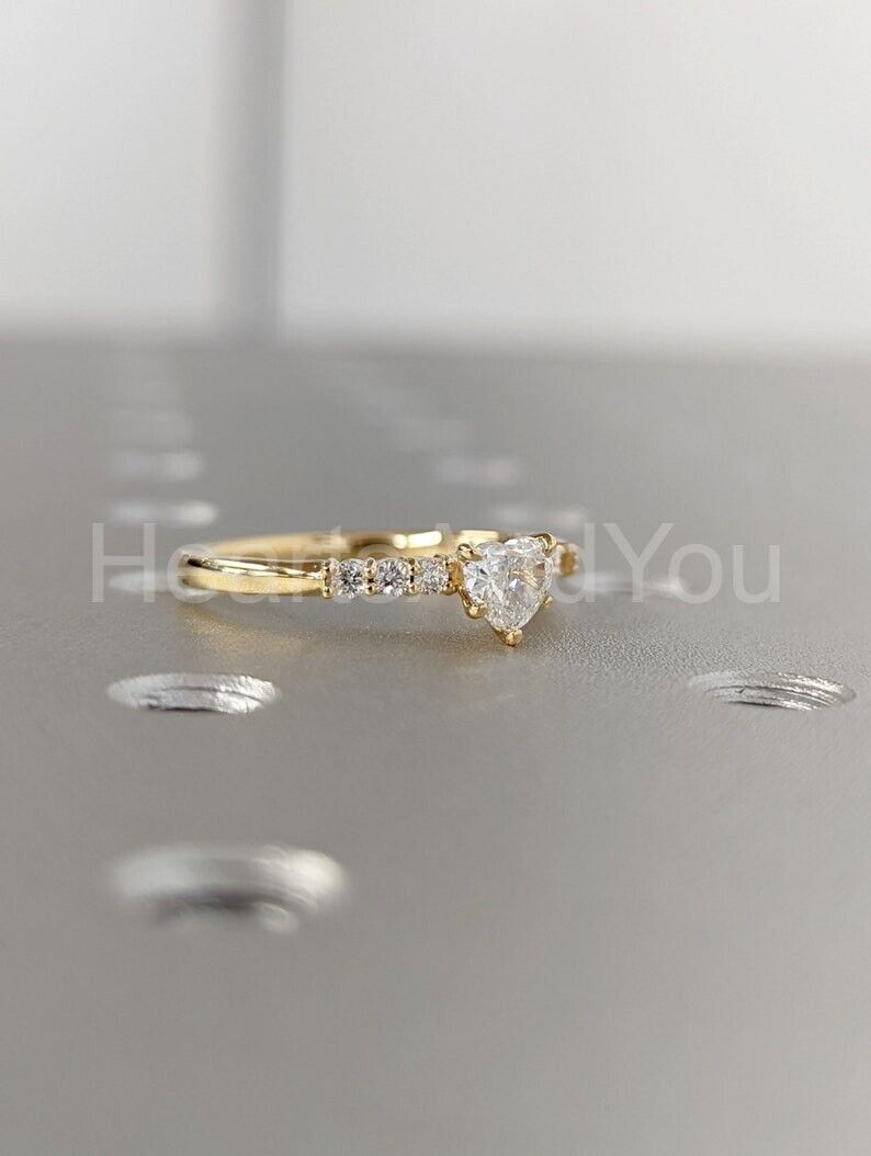 1ct Heart Simulated Diamond Solitaire with Accents Ring 14k Yellow Gold Plated