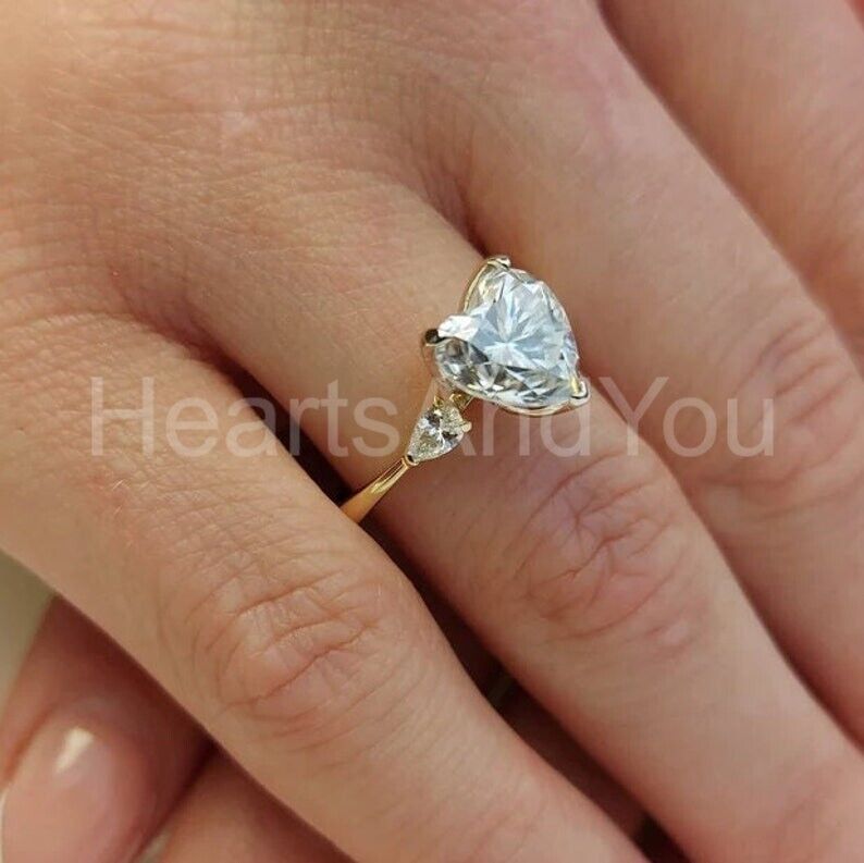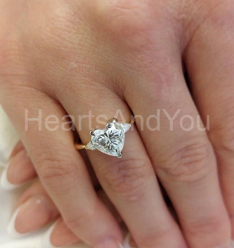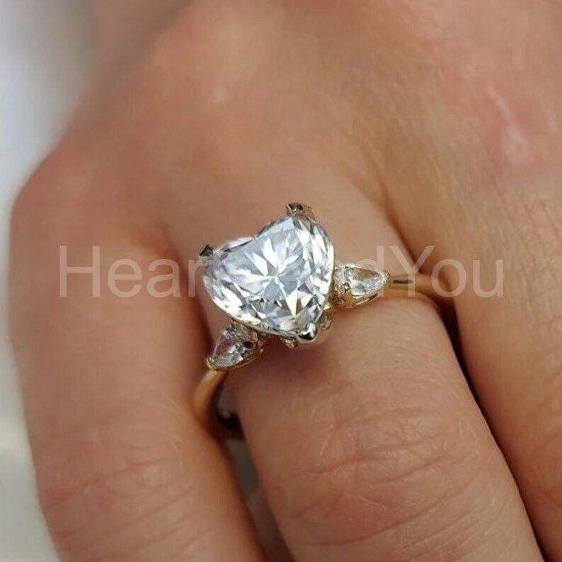 1ct Heart Simulated Diamond Three Stone Engagement Ring 14k Yellow Gold Plated