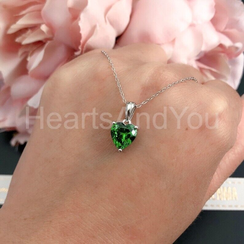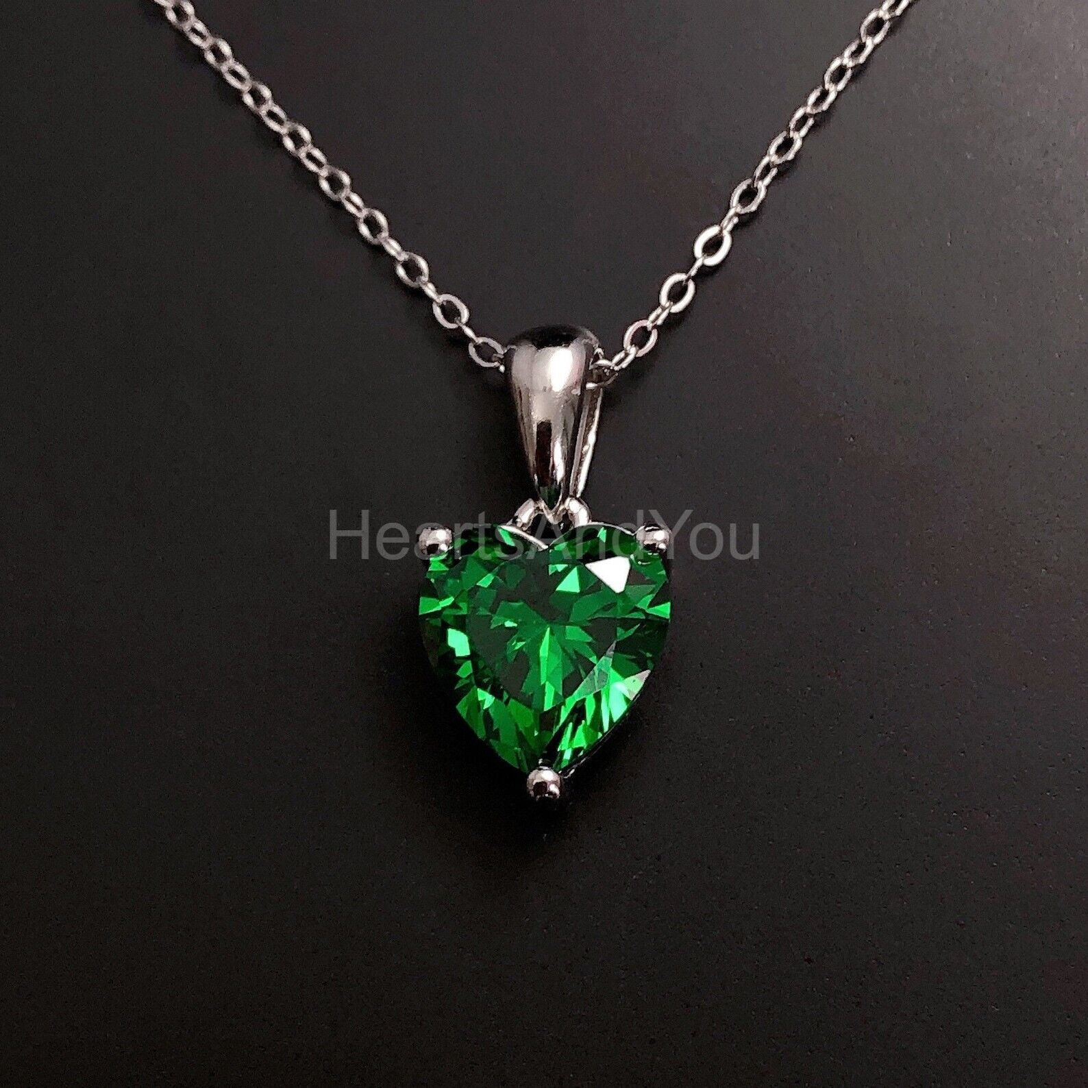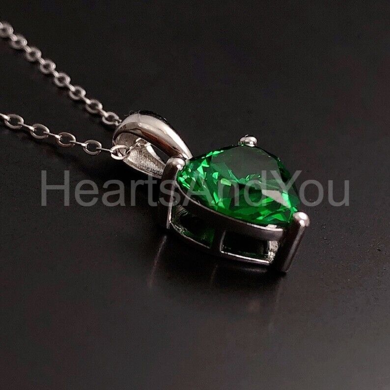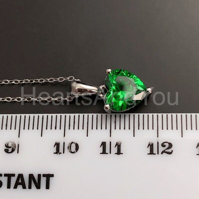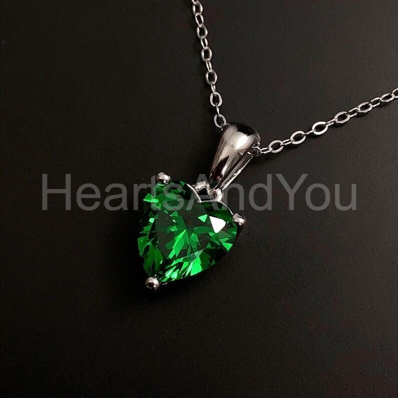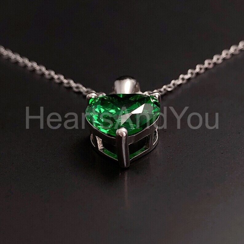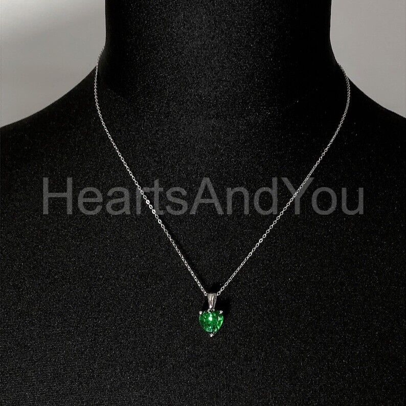 1ct Heart Cut Simulated Green Emerald Solitaire Pendant 14k White Gold Plated NO CHAIN