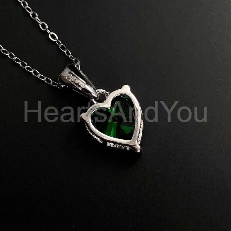 1ct Heart Simulated Emerald Solitaire Pendant 14k White Gold Plated NO CHAIN
