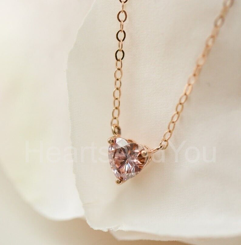 1ct Heart Simulated Peach Morganite Solitaire Pendant Chain 14k Rose Gold Plated