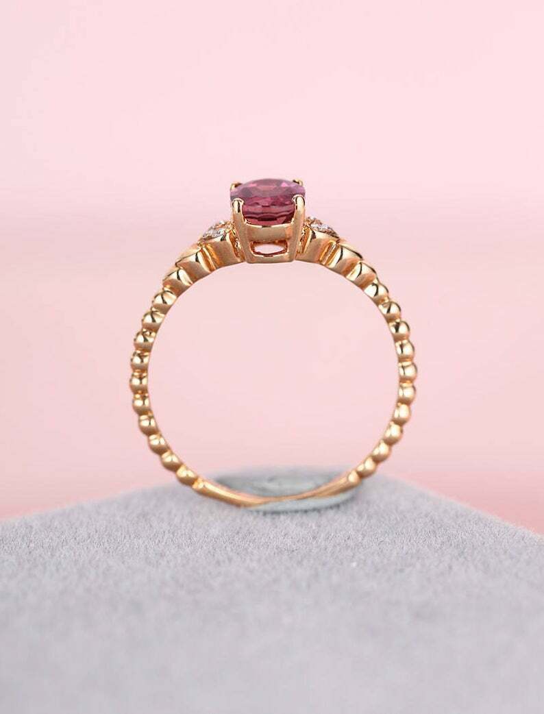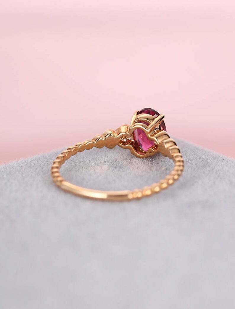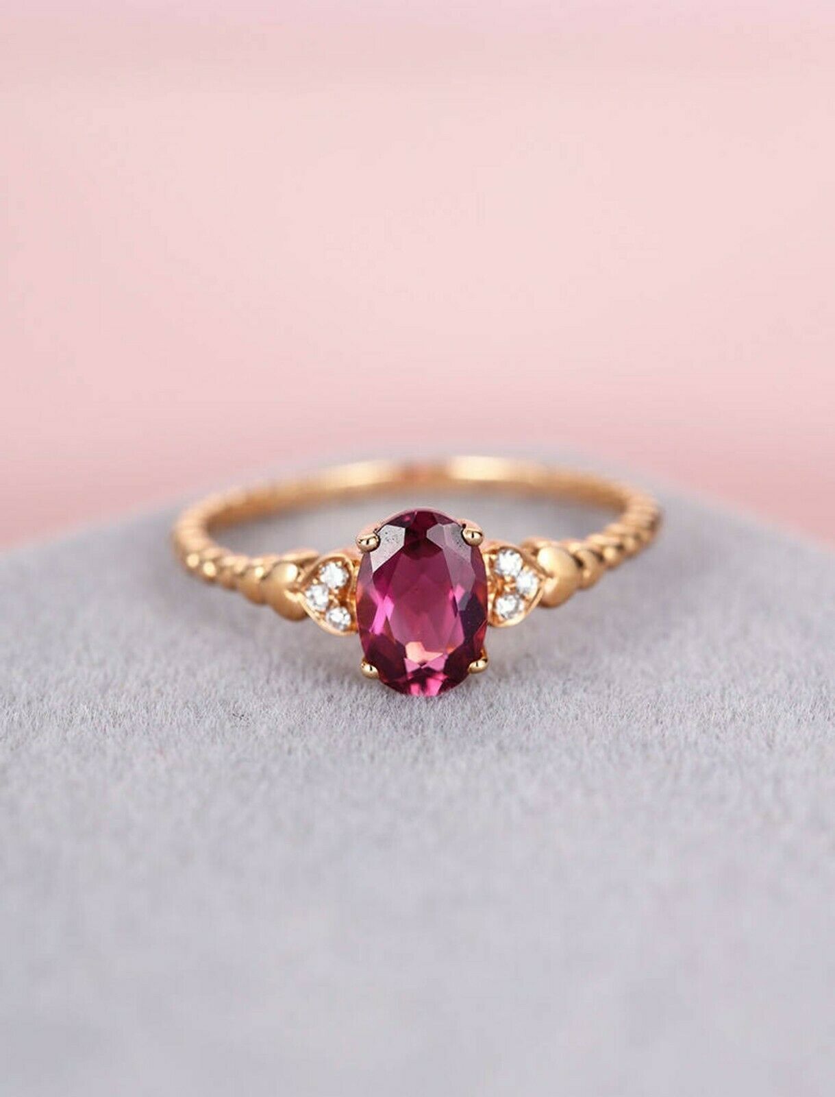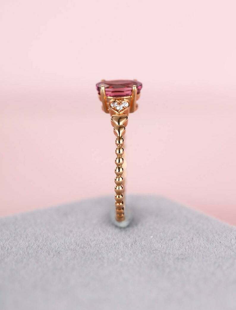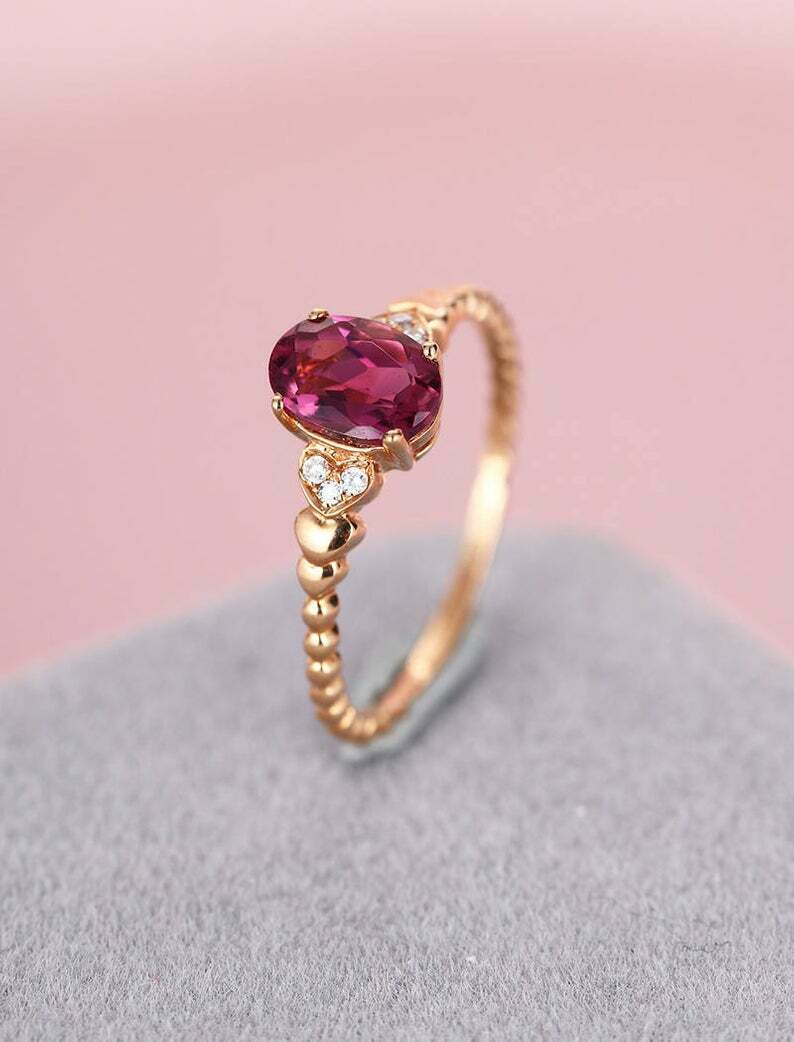 1ct Oval Cut Pink Ruby Engagement Ring Solitaire Heart Band 14k Rose Gold Finish