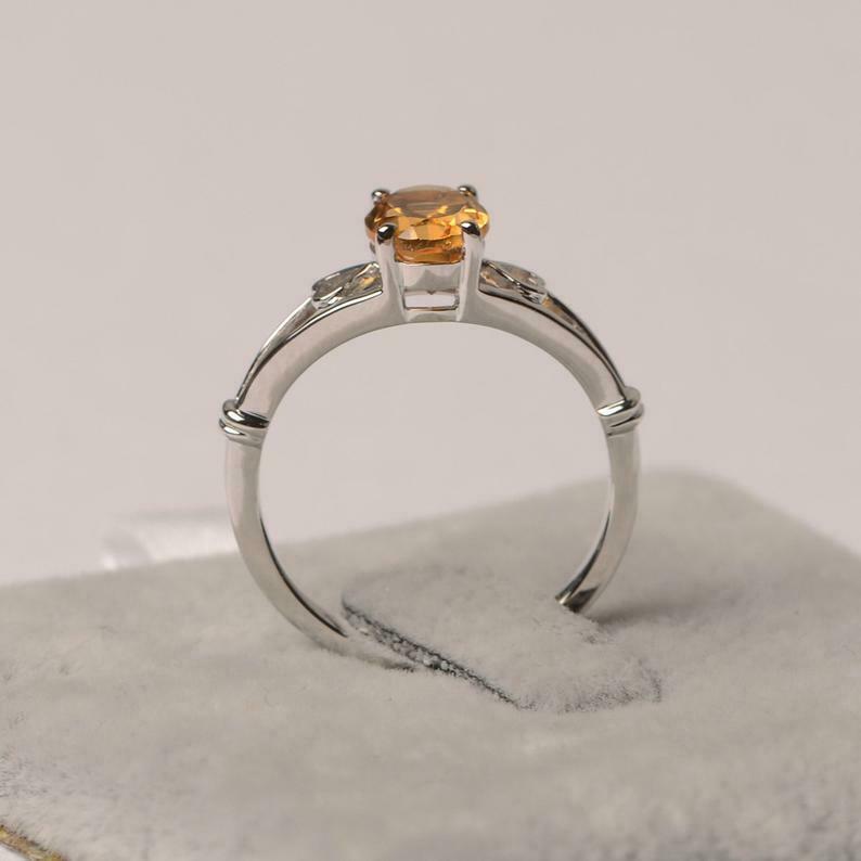 1ct Oval Cut Yellow Citrine Open Heart Shank Solitaire Ring 14k White Gold Finish