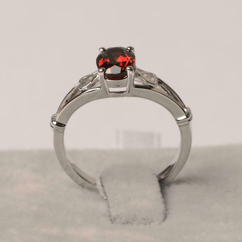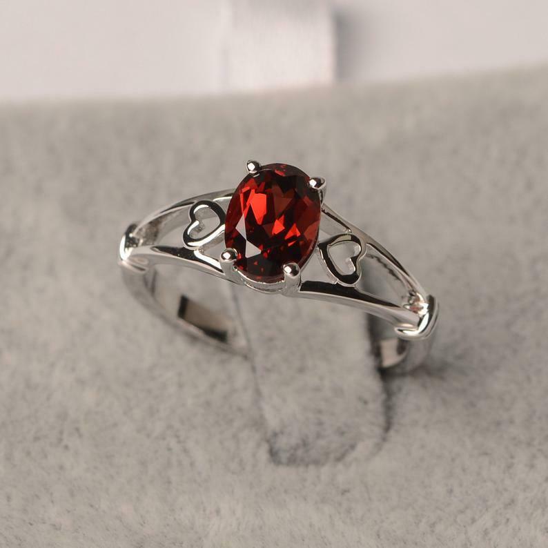 1ct Oval Garnet Engagement Ring Open Heart Shank Solitaire 14k White Gold Finish