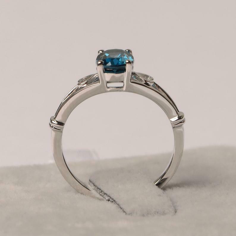 1ct Oval Cut London Blue Topaz Open Heart Shank Solitaire Ring 14k White Gold Finish