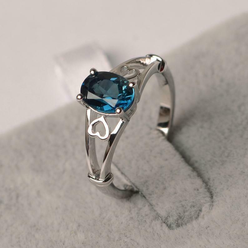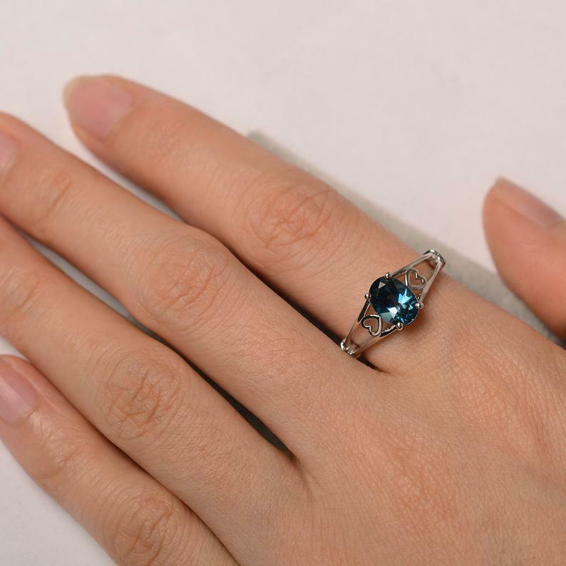 1ct Oval London Blue Topaz Open Heart Shank Solitaire Ring 14k White Gold Finish