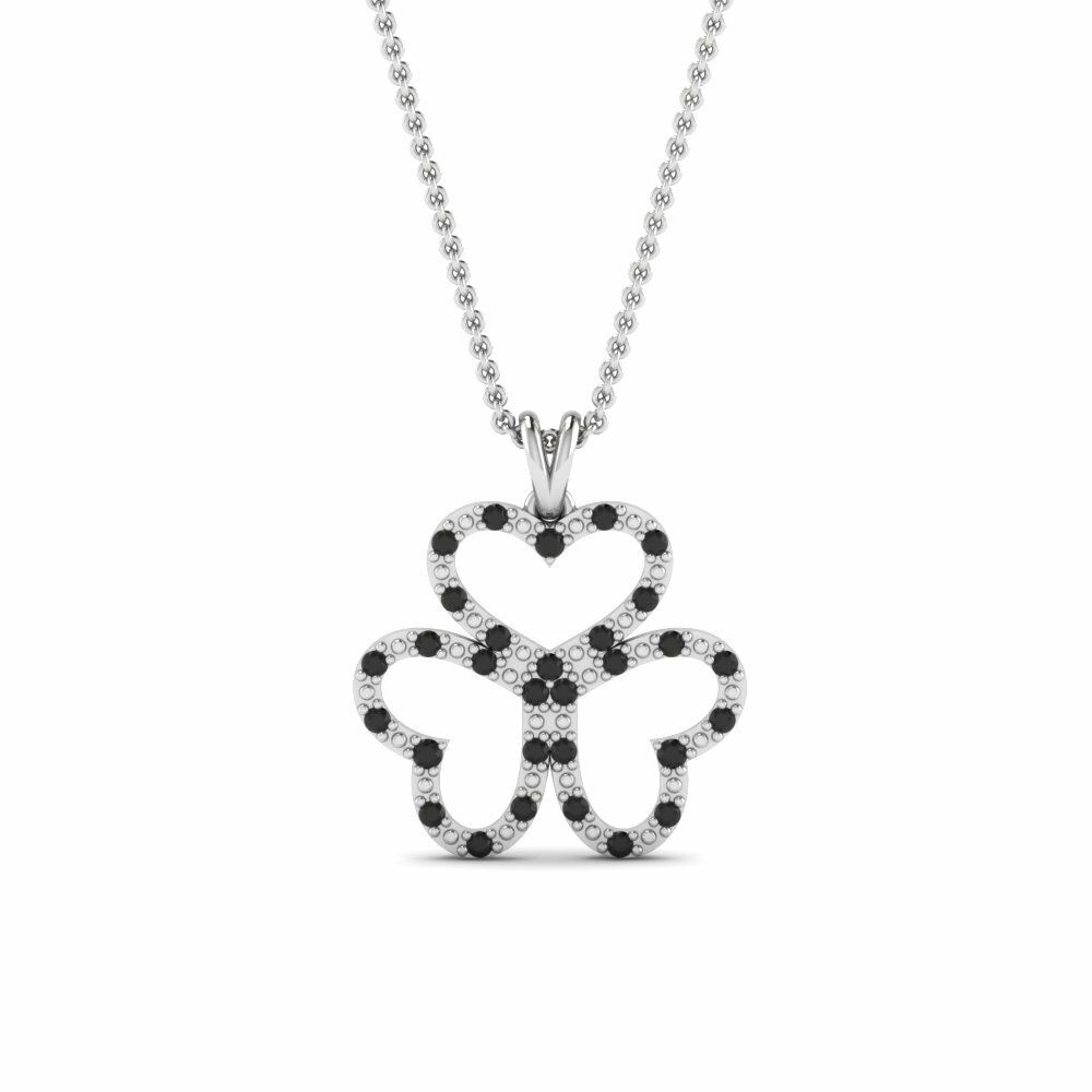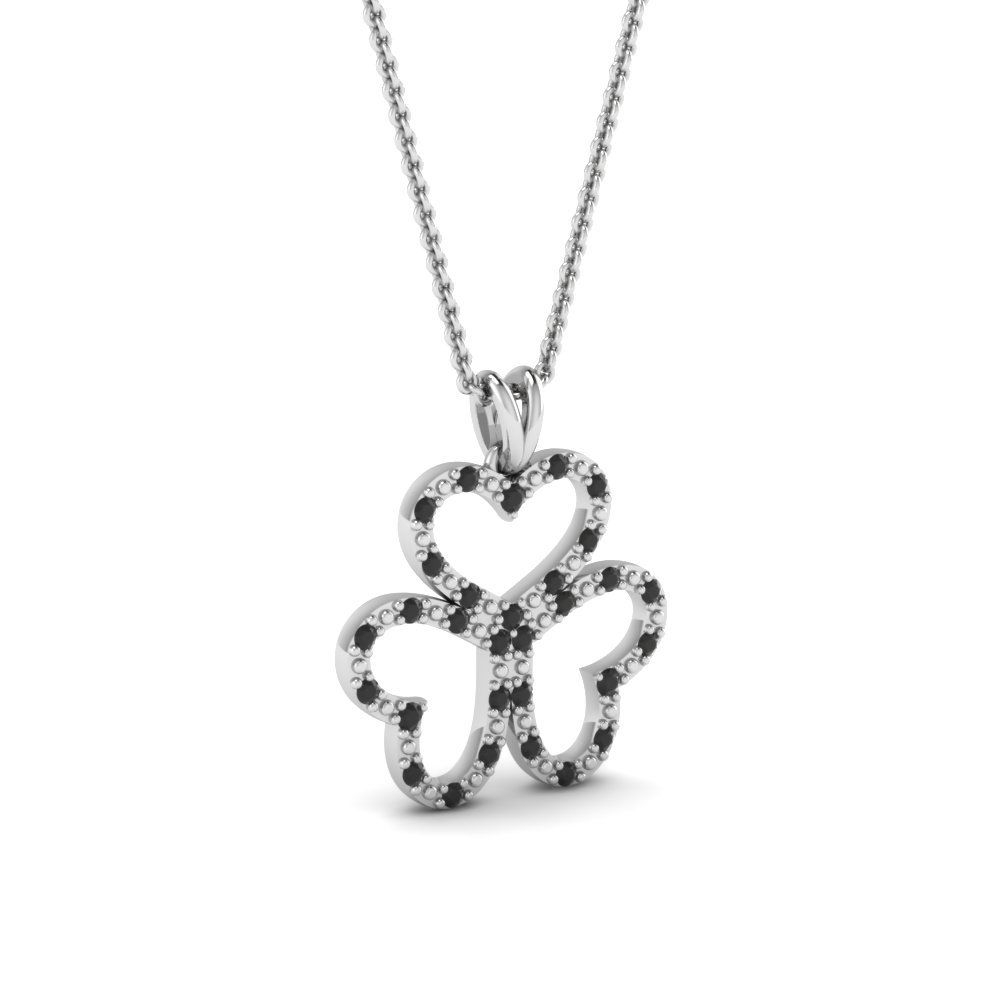 1ct Round Cut Black Diamond Heart Clover Pendant 14k White Gold Finish NO CHAIN