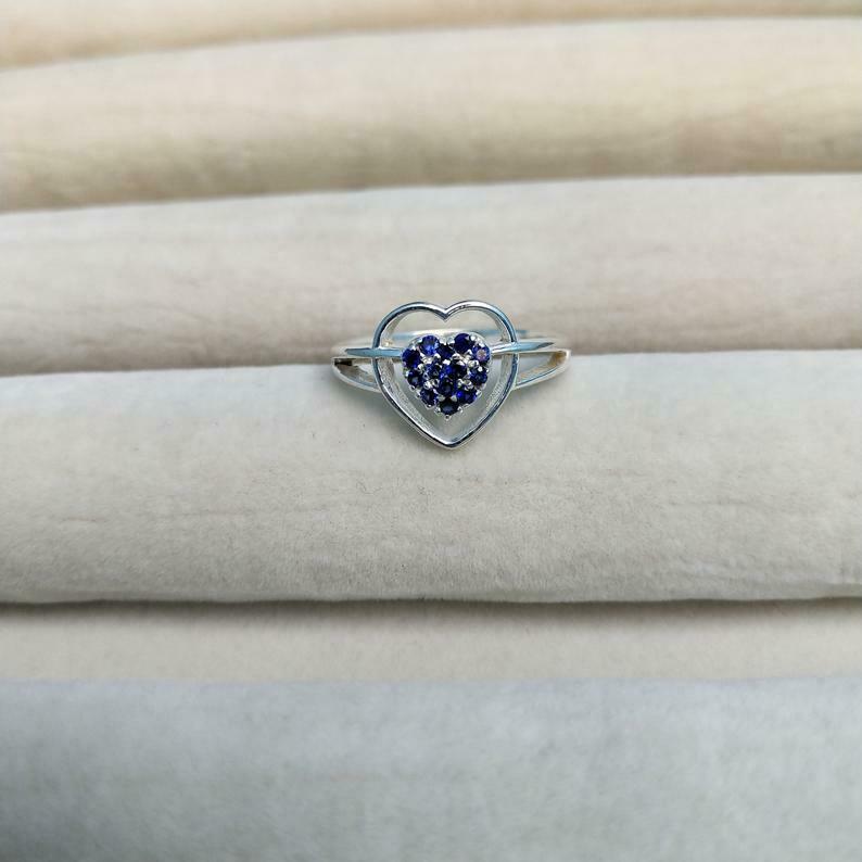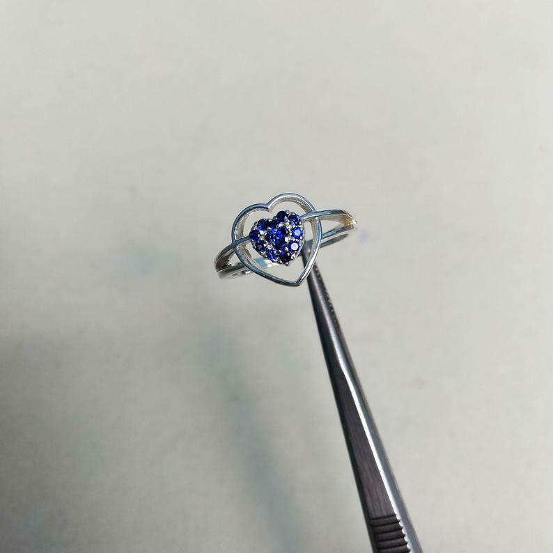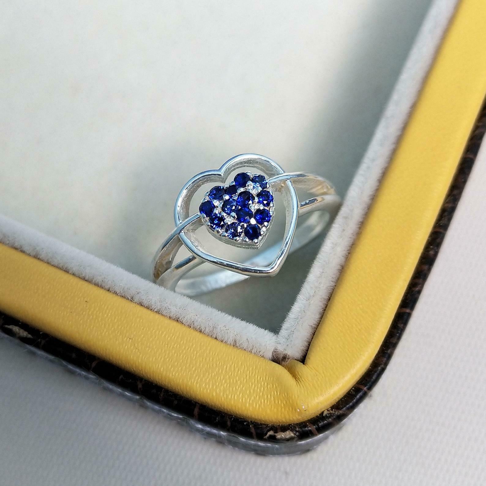 1ct Round Cut Blue Sapphire Heart Split Shank Engagement Ring 14k White Gold Over