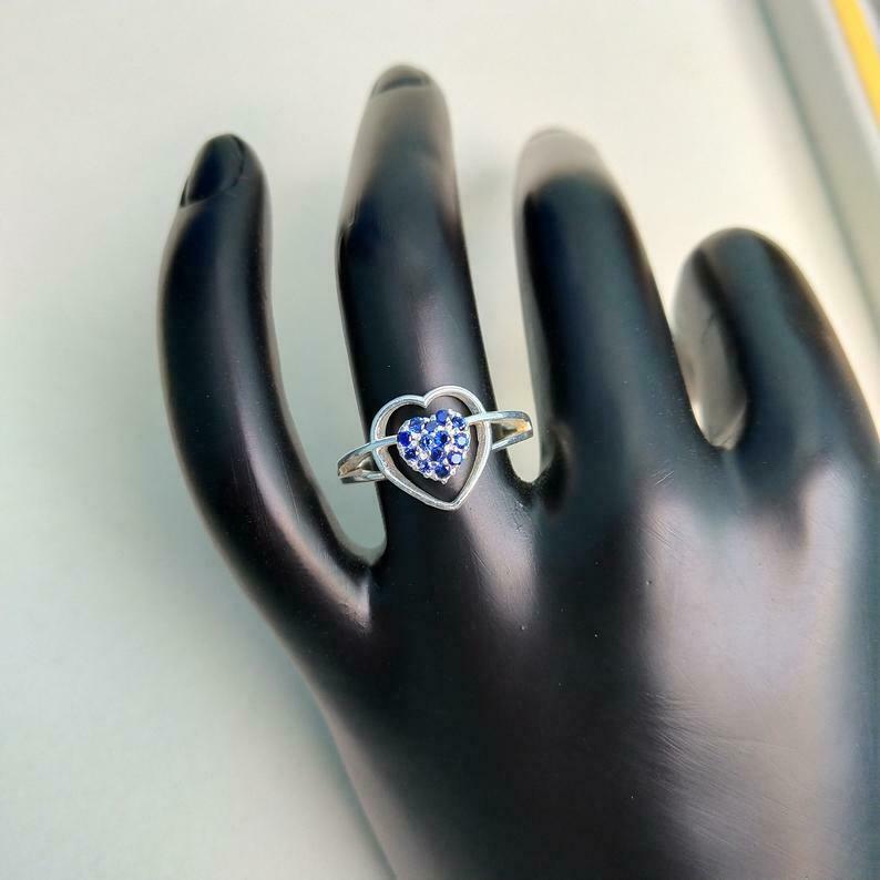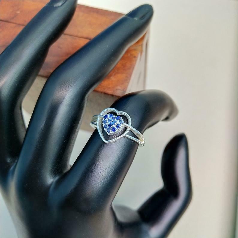 1ct Round Cut Blue Sapphire Heart Split Shank Engagement Ring 14k WhiteGold Over
